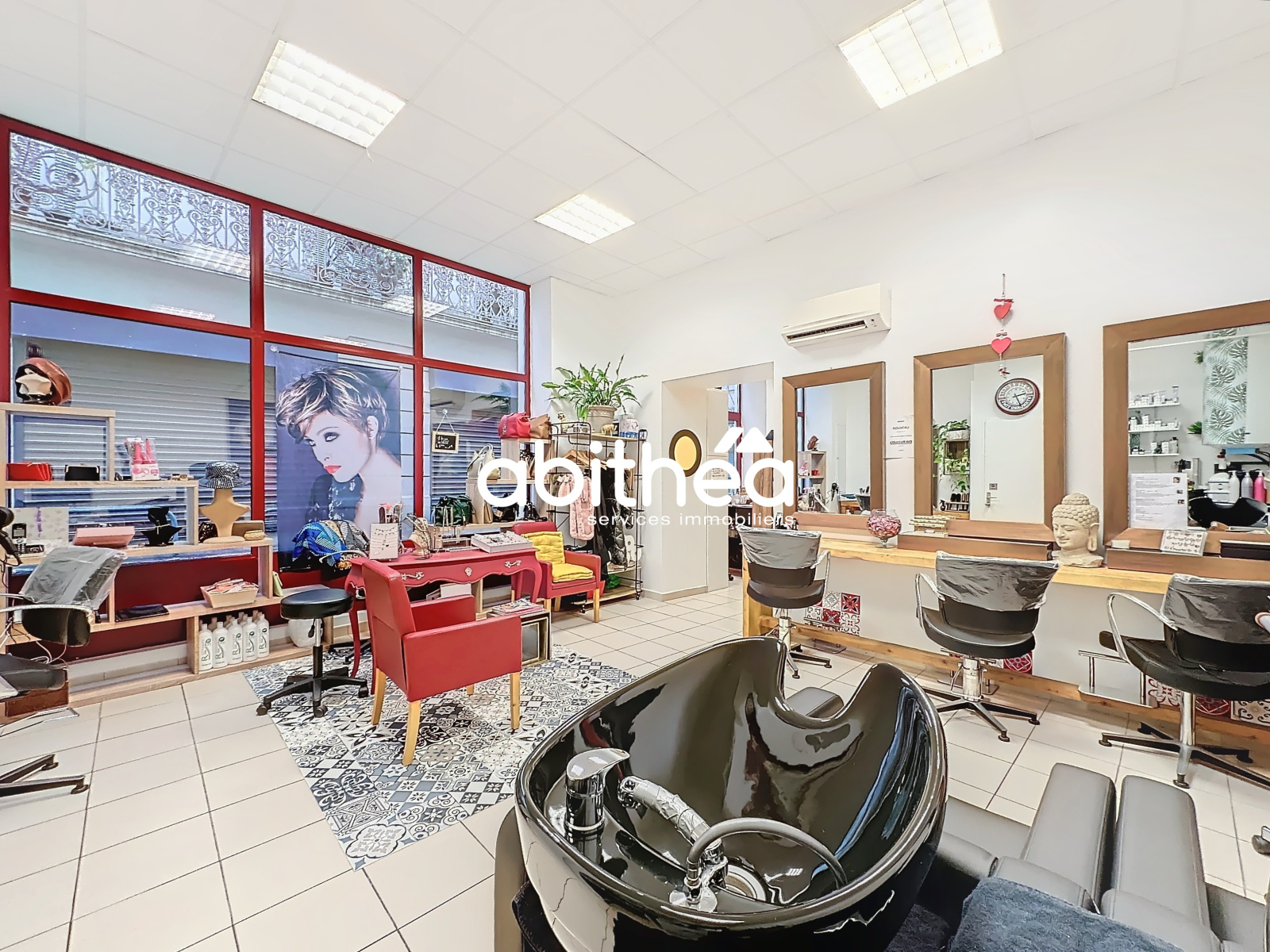 Extrêmement bien situé au centre ville de Béziers, en angle de rue et au milieu des commerces, transports et autres commodités, vous trouverez ce fond de commerce, beau salon de coiffure très bien équipé et directement exploitable.