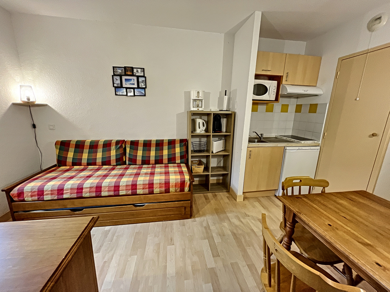 Ustou (09140)Appartement cosy situé au pied des pistes de ski de la station Guzet. Idéal pour accueillir chaleureusement une famille ou des amis, venez passer d'agréables moments grâce à la salle de sport qui est à votre disposition. Au pied des pistes et en pleins coeur de la station de ski, venez découvrir le domaine il n'attend que vous ! Cet appartement dispose d'une chambre avec lit double, d'une salle d'eau ainsi qu'un coin cuisine équipé et d'un espace séjour avec lit gigogne.