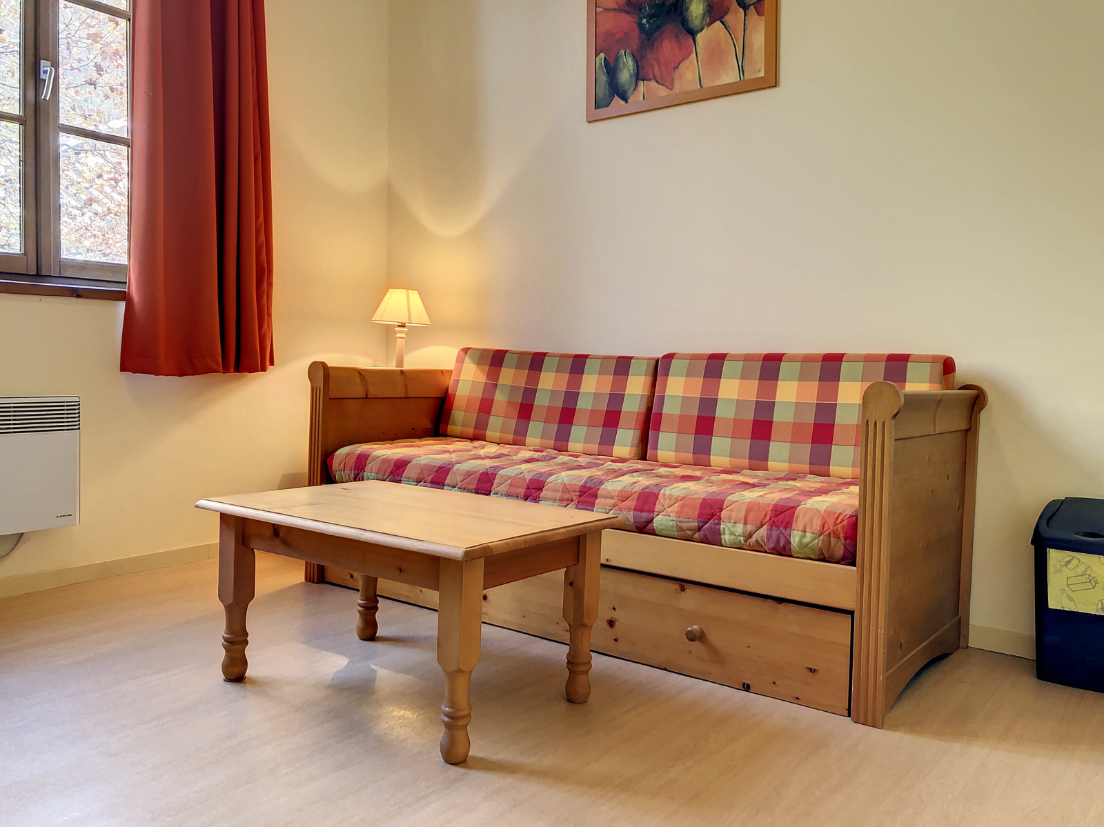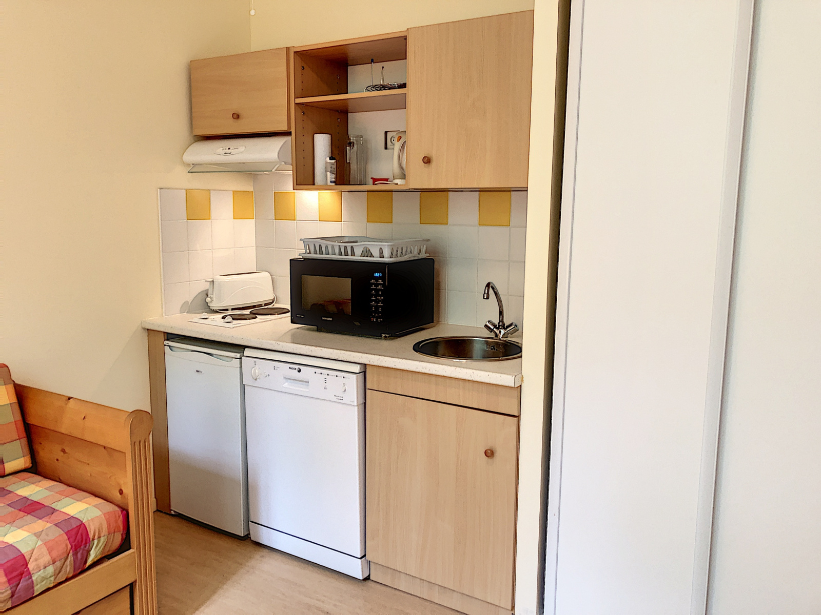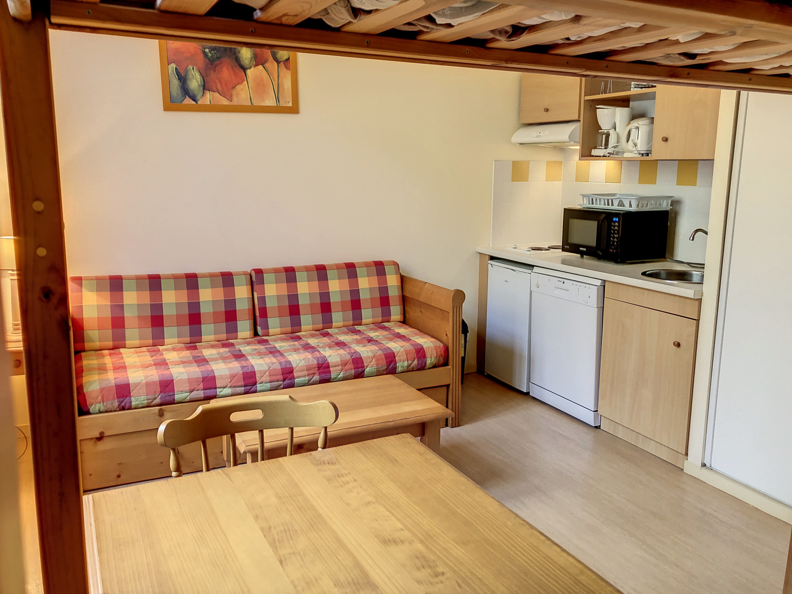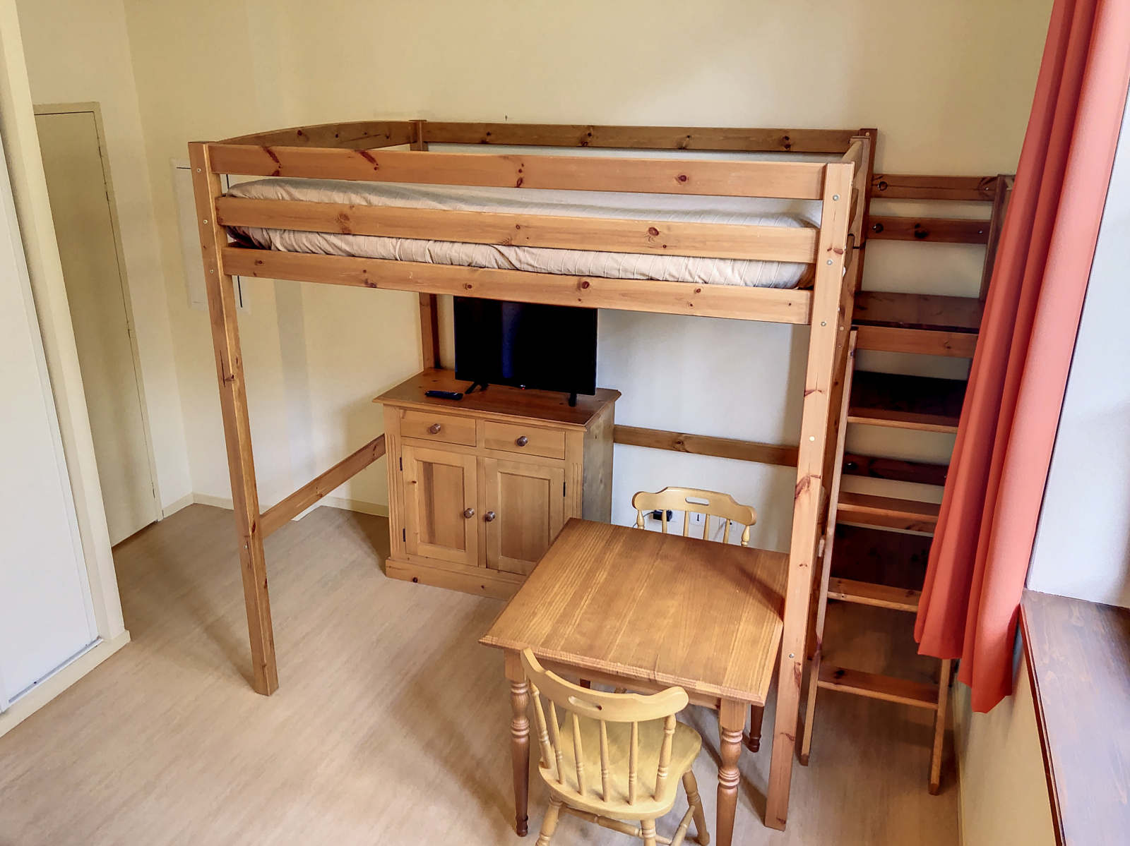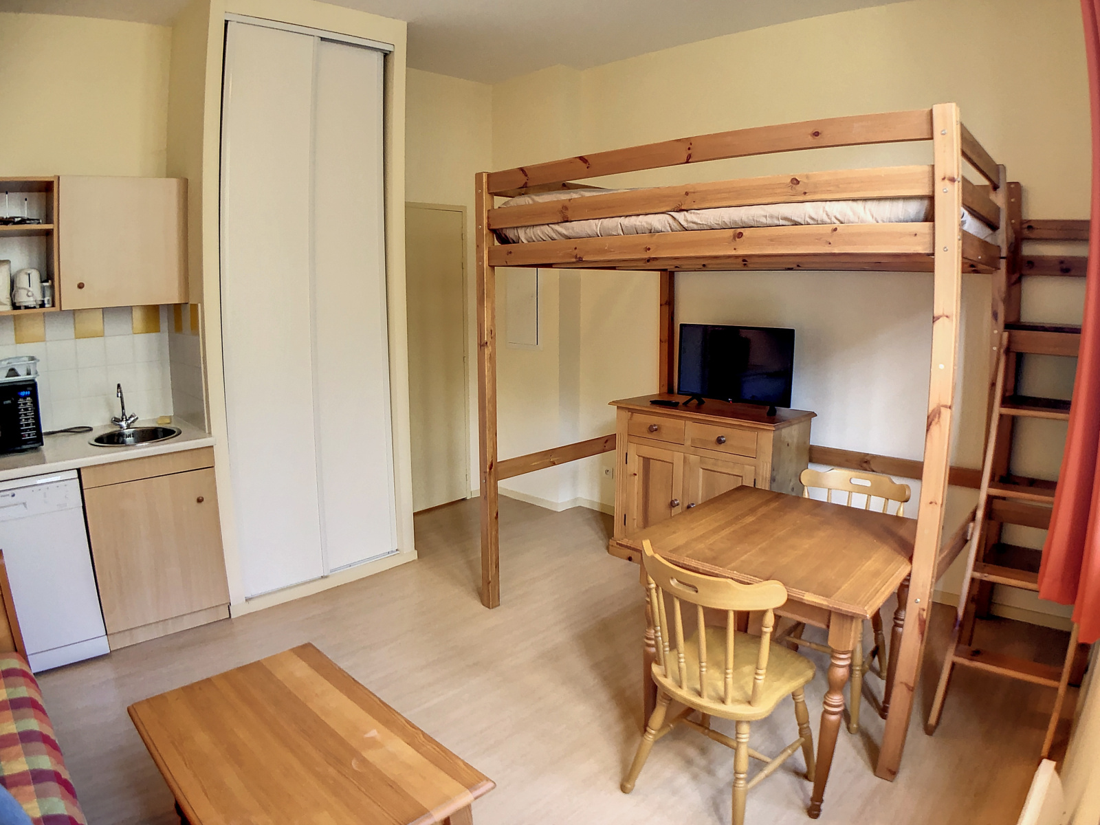 Le studio n°105 est situé au premier étage. Cet appartement, pouvant accueillir jusqu'à 4 personnes, est composé d'un grand séjour avec un canapé-lit gigogne et un lit superposé. Il dispose également d'une belle salle de bain avec baignoire et d'un coin cuisine équipé.