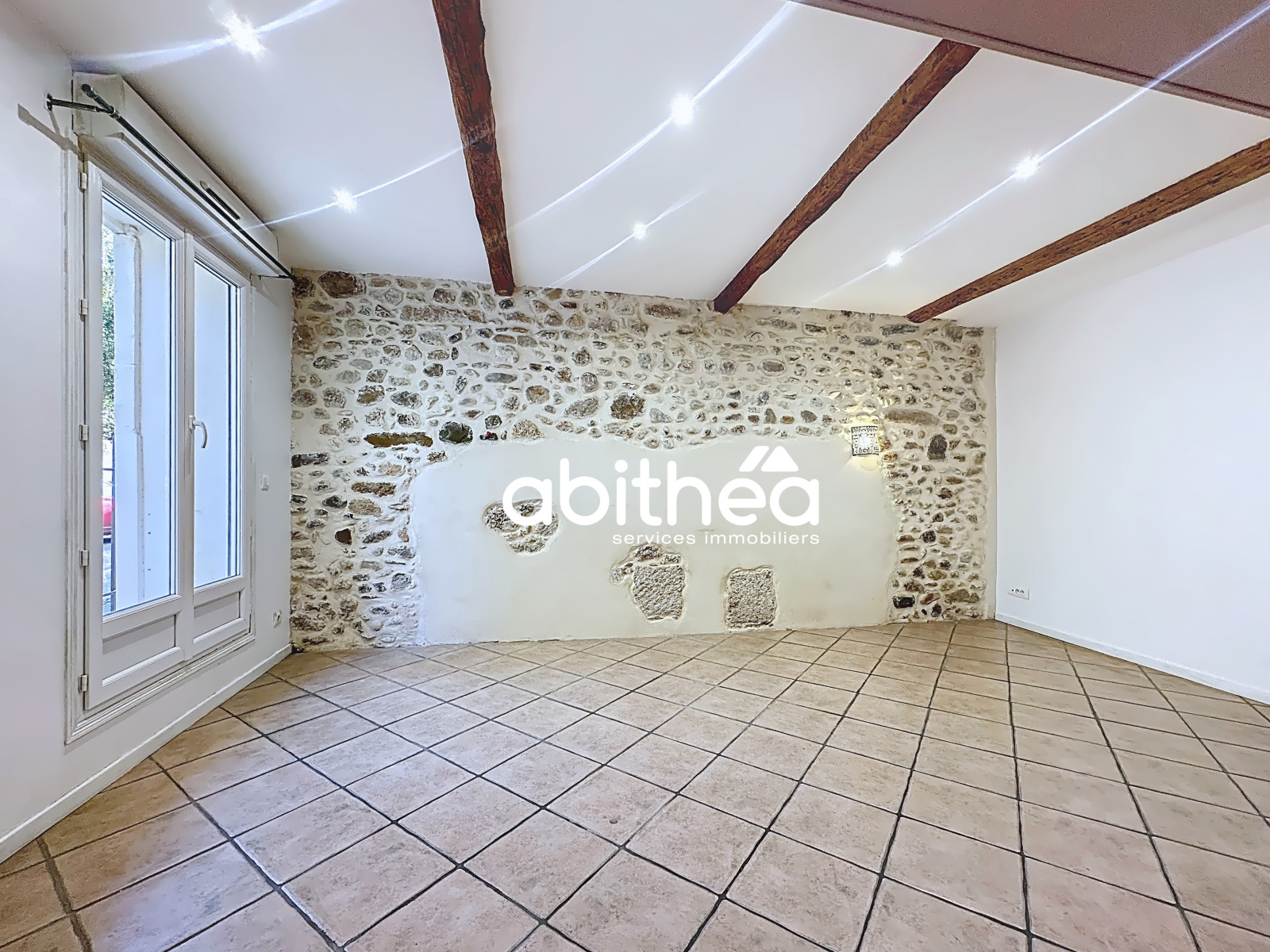 Le charme de l’ancien est au rendez-vous avec un magnifique mur en pierre et des poutres apparentes qui apportent caractère et authenticité.