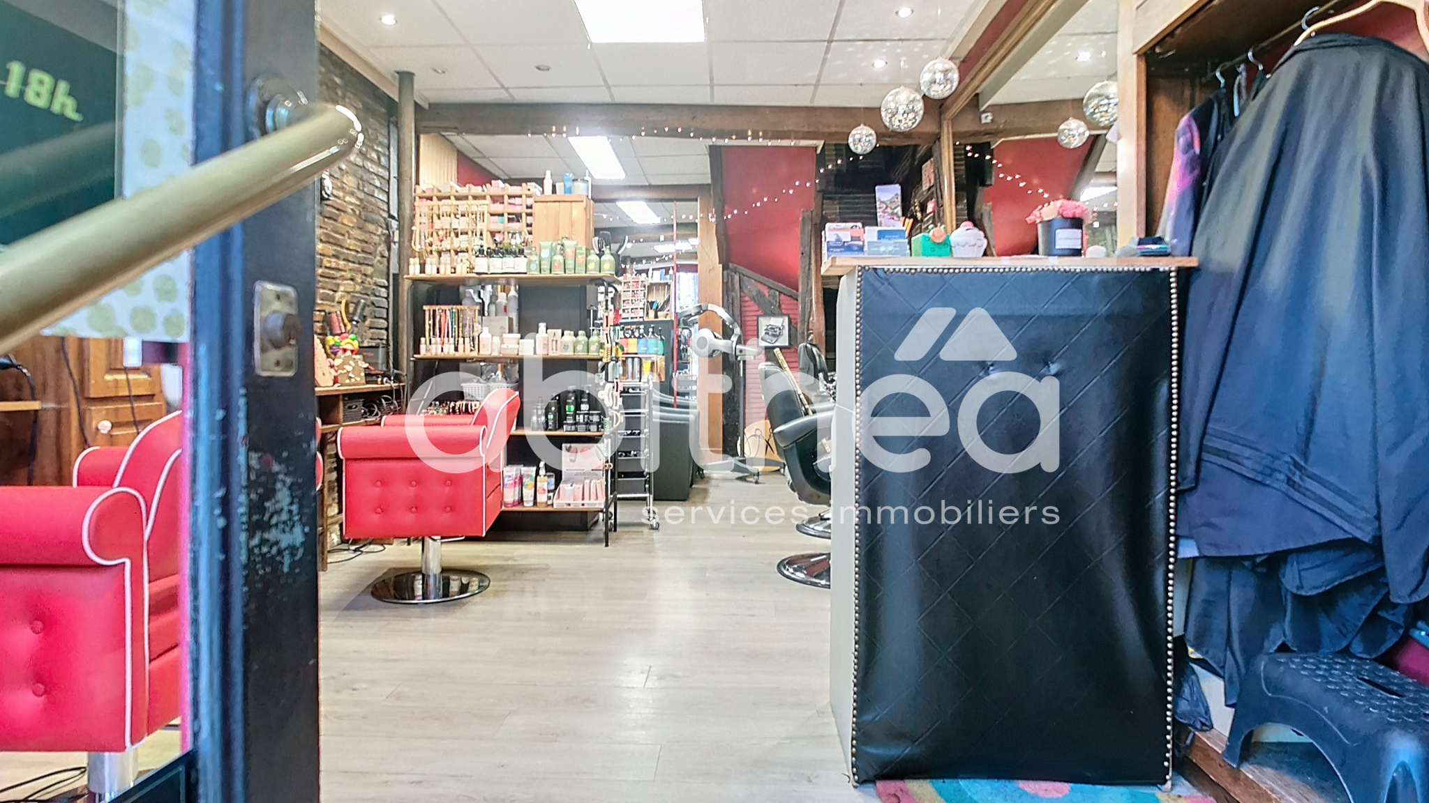 Local commercial actuellement exploité en salon de coiffure, bénéficiant d’une belle visibilité. -