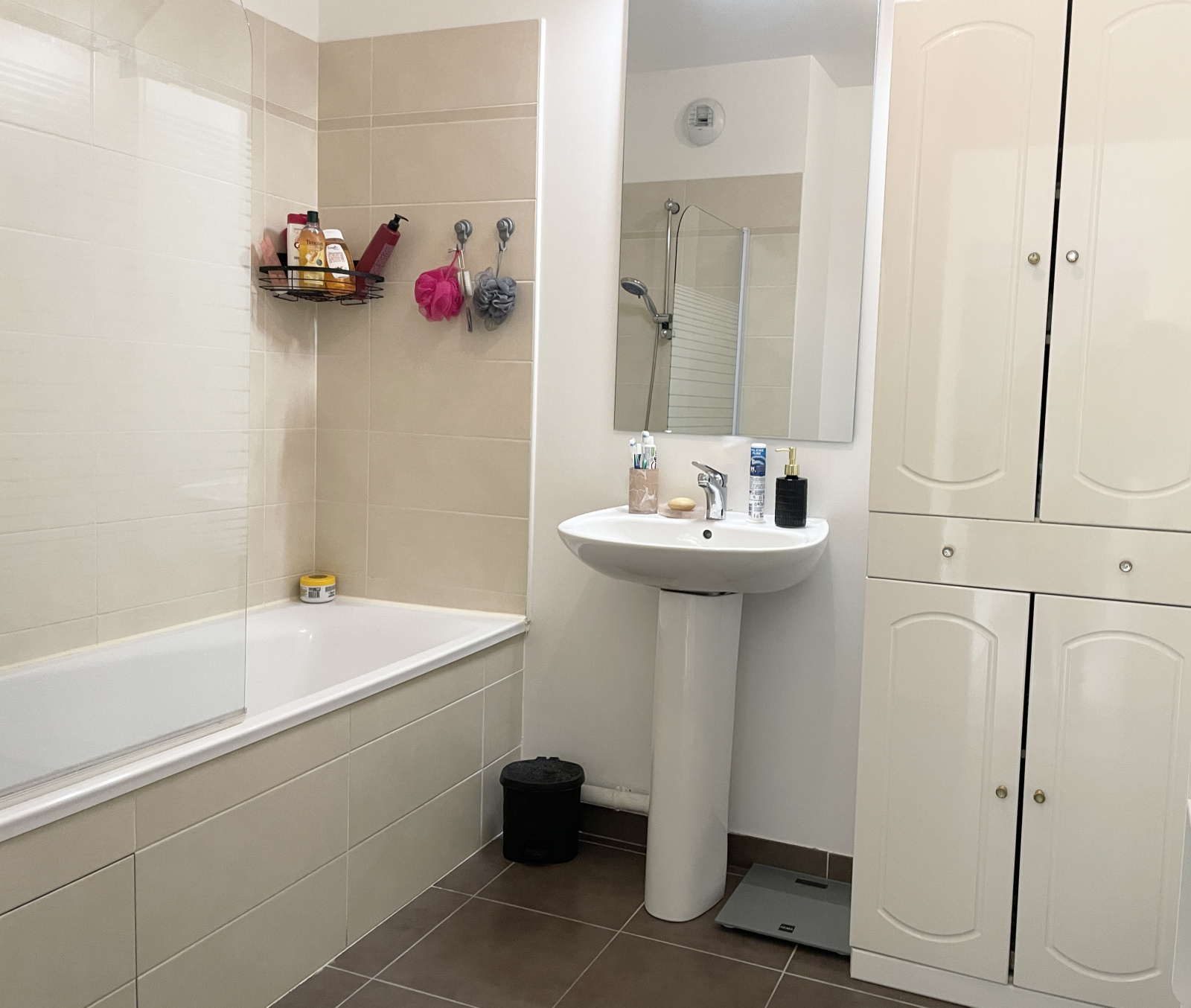 L'appartement est composé d'une grande entrée, d'un salon/séjour avec cuisine, deux chambres, une salle bain et un wc.