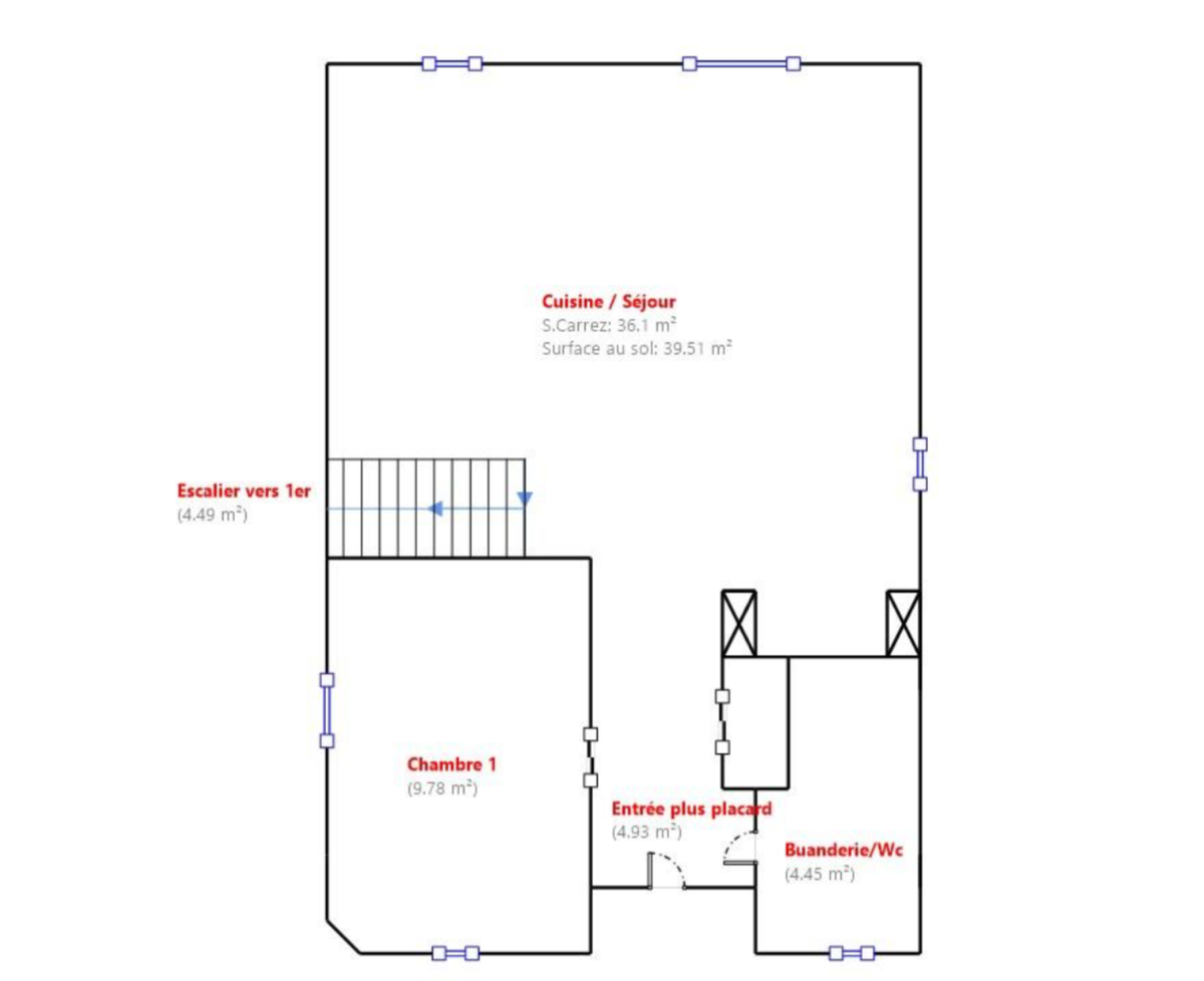 _ La villa se compose en rez de chaussée d'une belle entrée avec placard, d'un vaste séjour avec cuisine de 36 m2 et sa terrasse attenante de 28 m2 exposé Sud, d'une chambre de 10 m2, d'un grand espace buanderie/wc
