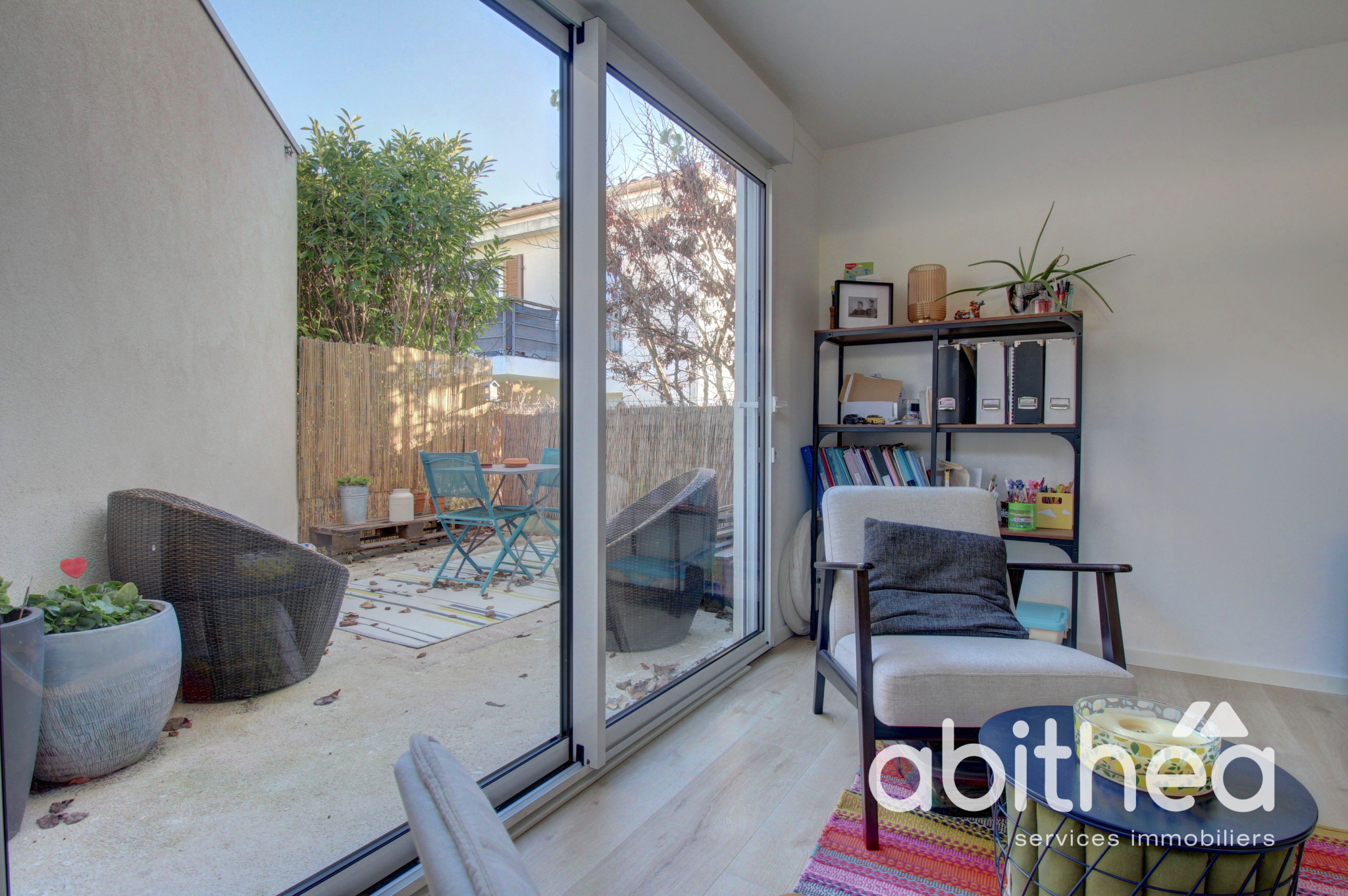 _ Vous profiterez d'un environnement calme et très lumineux exposé Sud , proche des commerces de proximité, dans un lotissement fermé et sécurisé avec acces direct à la piscine de la copropriété