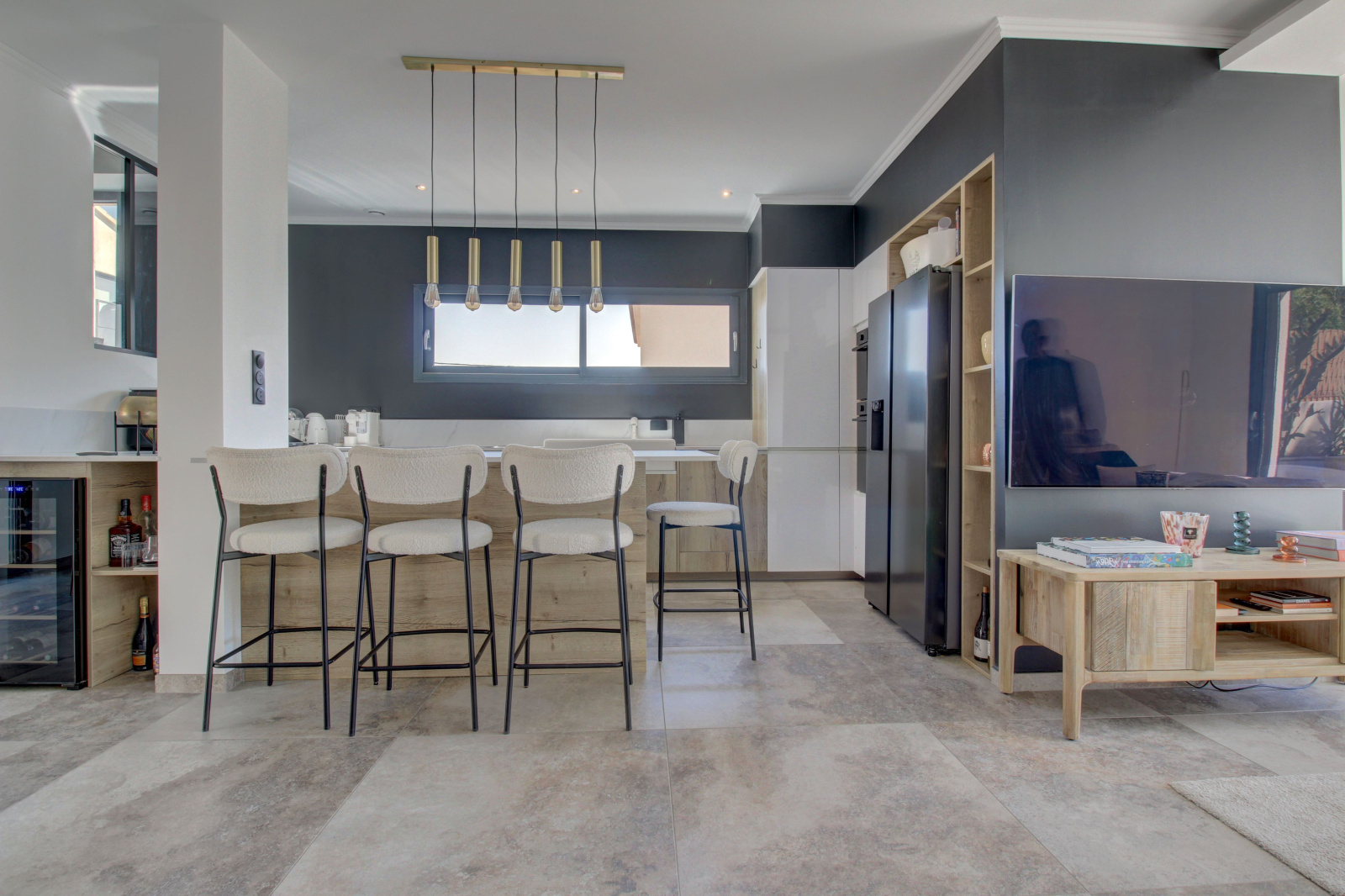 Dès l’entrée de plain-pied, vous apprécierez la qualité des prestations et l’agencement idéal de cette maison récente. La pièce de vie, conviviale et agréable, avec sa cuisine moderne ouverte sur le séjour, entièrement équipée avec de l'électroménager de pointe alliant esthétisme et fonctionnalité, le tout offrant des espaces de circulation fluides, avec un revêtement principal en carrelage de qualité. Une première petite chambre pourra faire office de bureau fonctionnel,