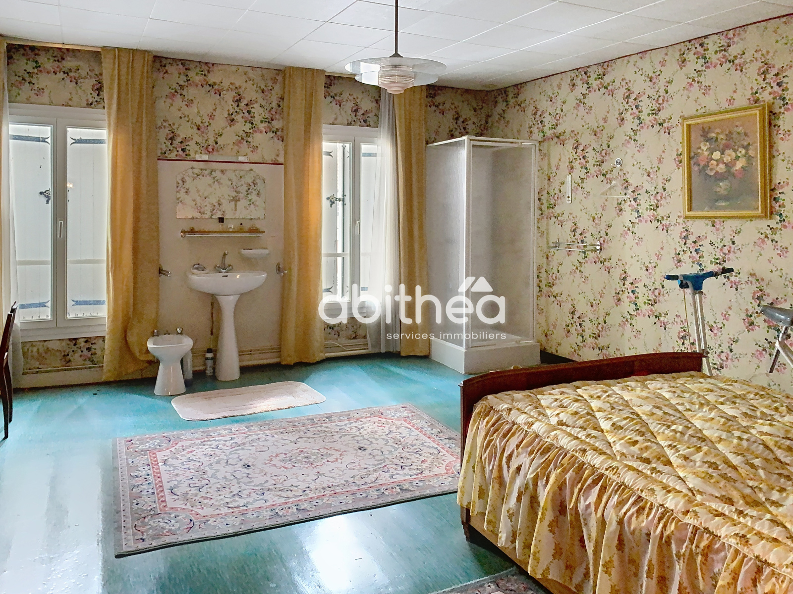 Au deuxième étage le palier distribue 2 autres chambres de 10 et 25 m2 avec une lavabo et une douche ainsi qu'un wc.