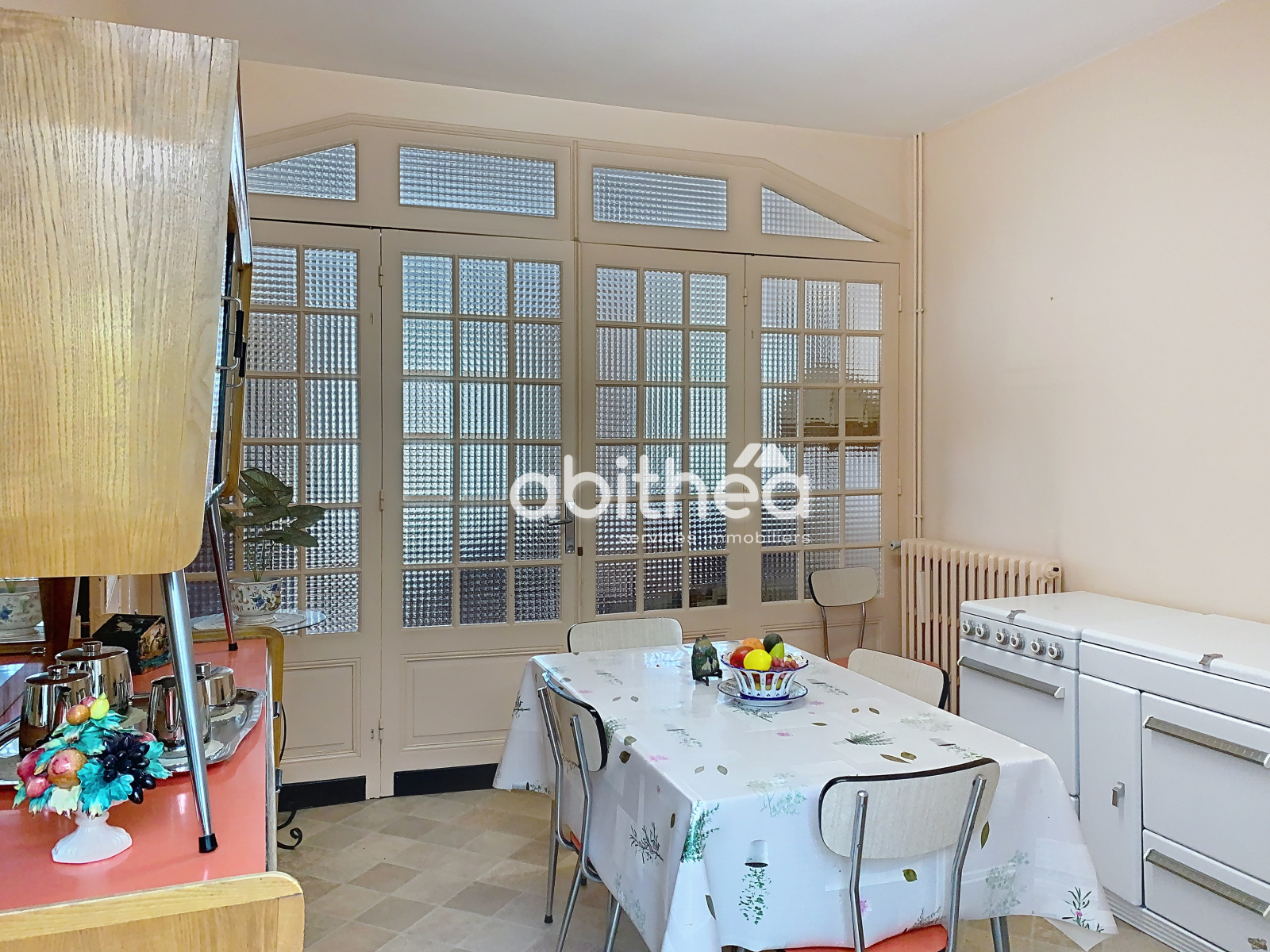 Depuis l'entrée vous accédez au charmant salon très lumineux avec une belle hauteur sous plafond ouvrant sur la salle à manger et la cuisine.