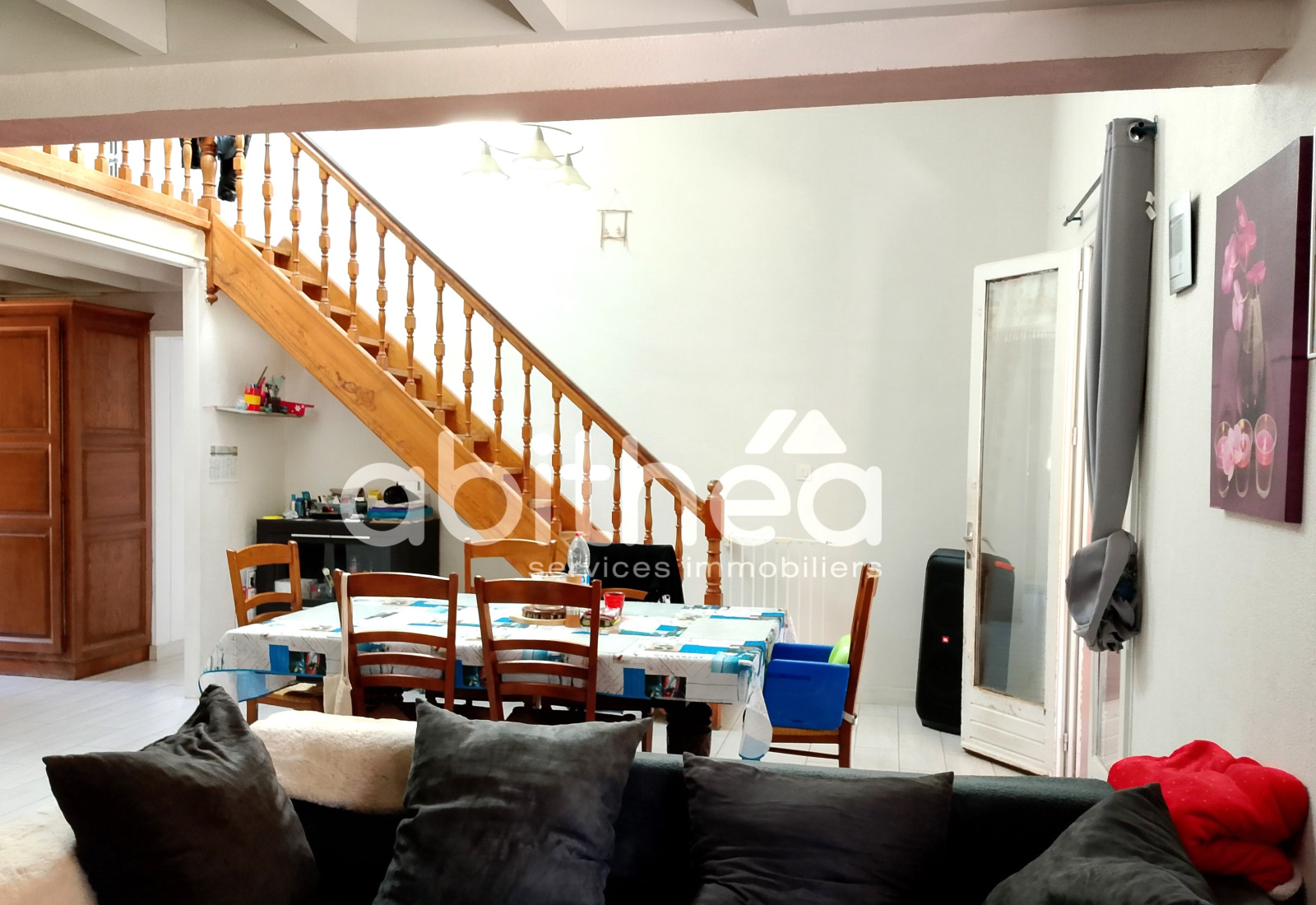 A l'étage, une mezzanine aménagée en espace bureau et deux pièces mansardées pouvant faire une grande chambre. Non attenant un garage 24m²