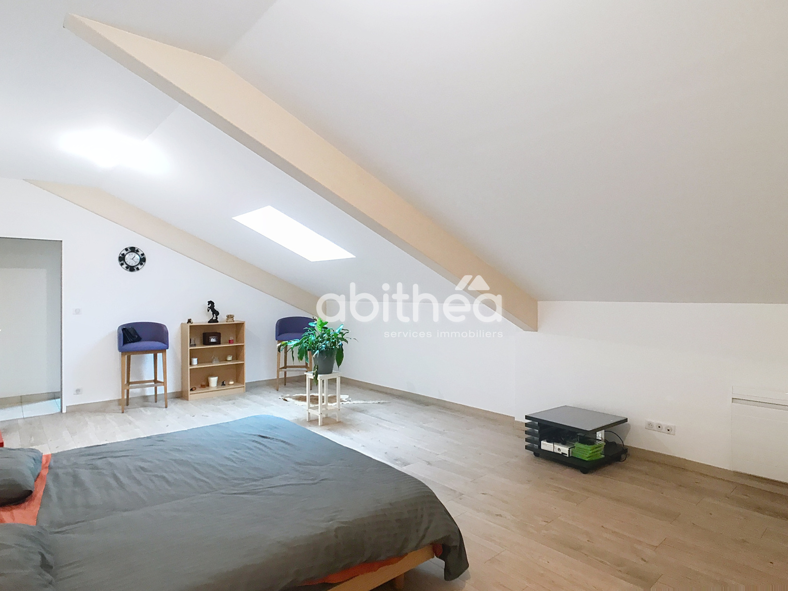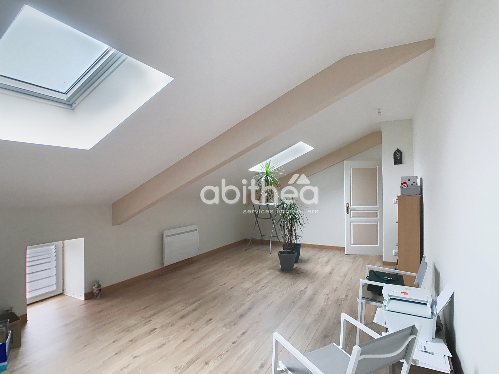 À l'étage, un palier avec wc, une grande salle de bain et trois chambres spacieuses de 30 m² chacune.