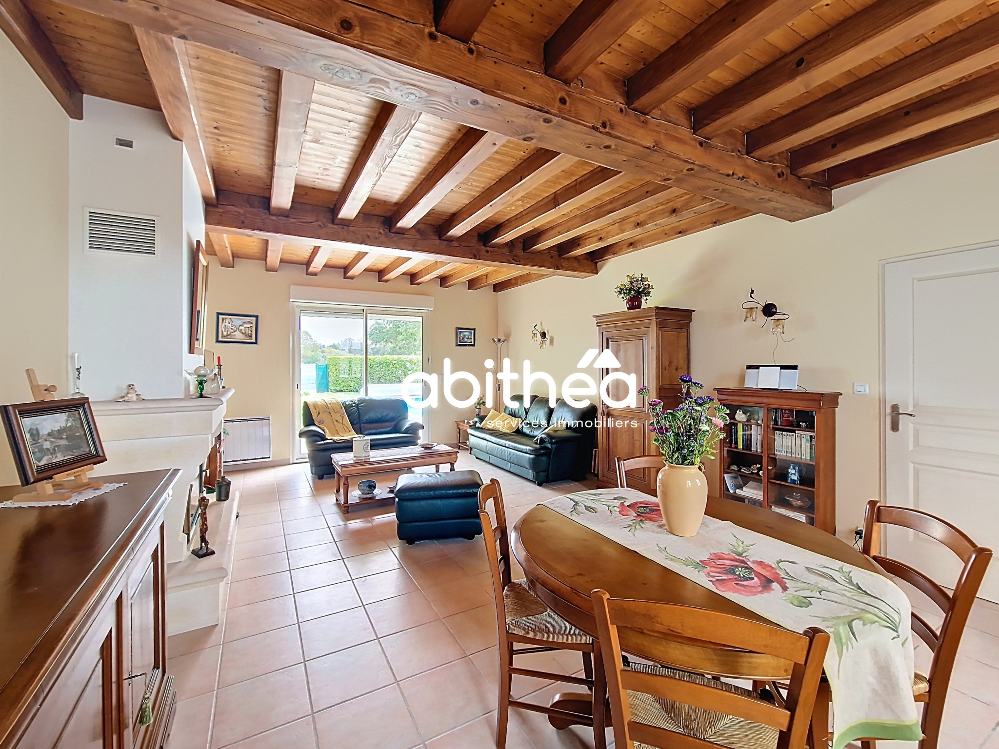 Le séjour traversant permet l'aménagement de deux beaux espaces : salon et salle à manger. La cheminée domine cette pièce et vous offrira de beaux moments chaleureux en famille.