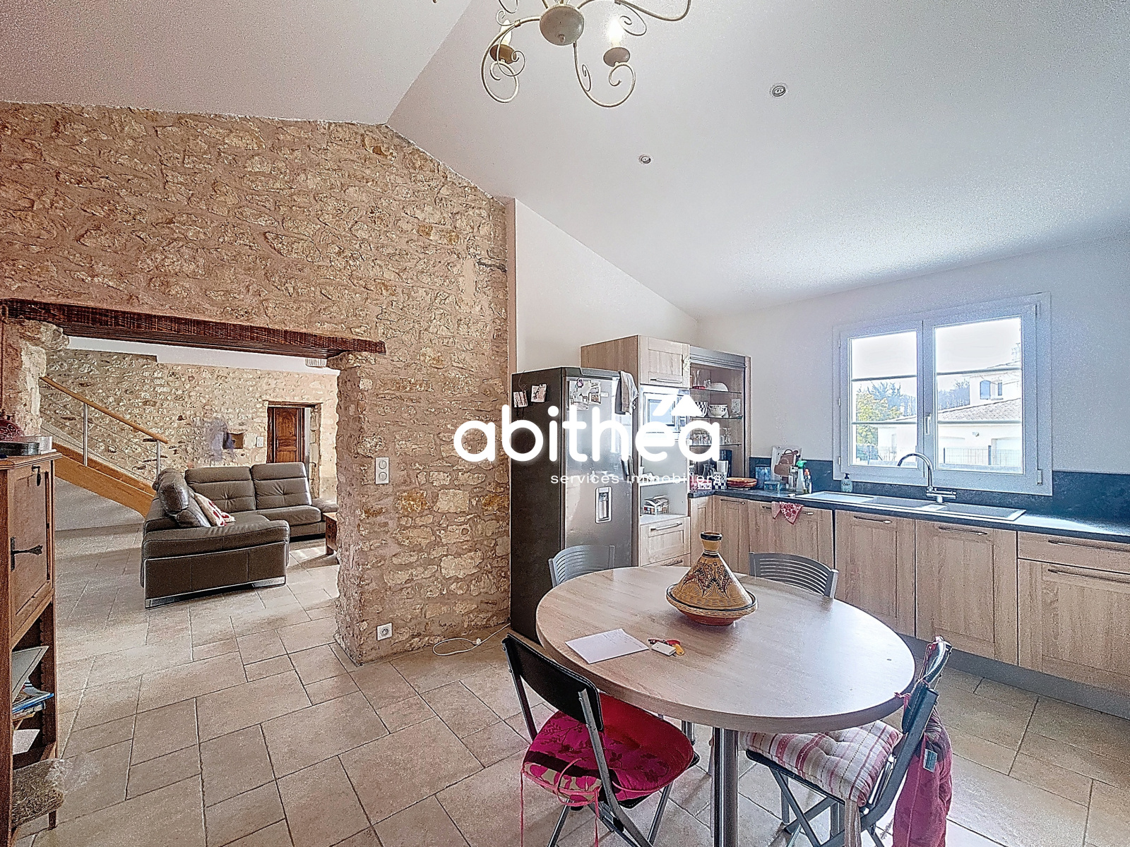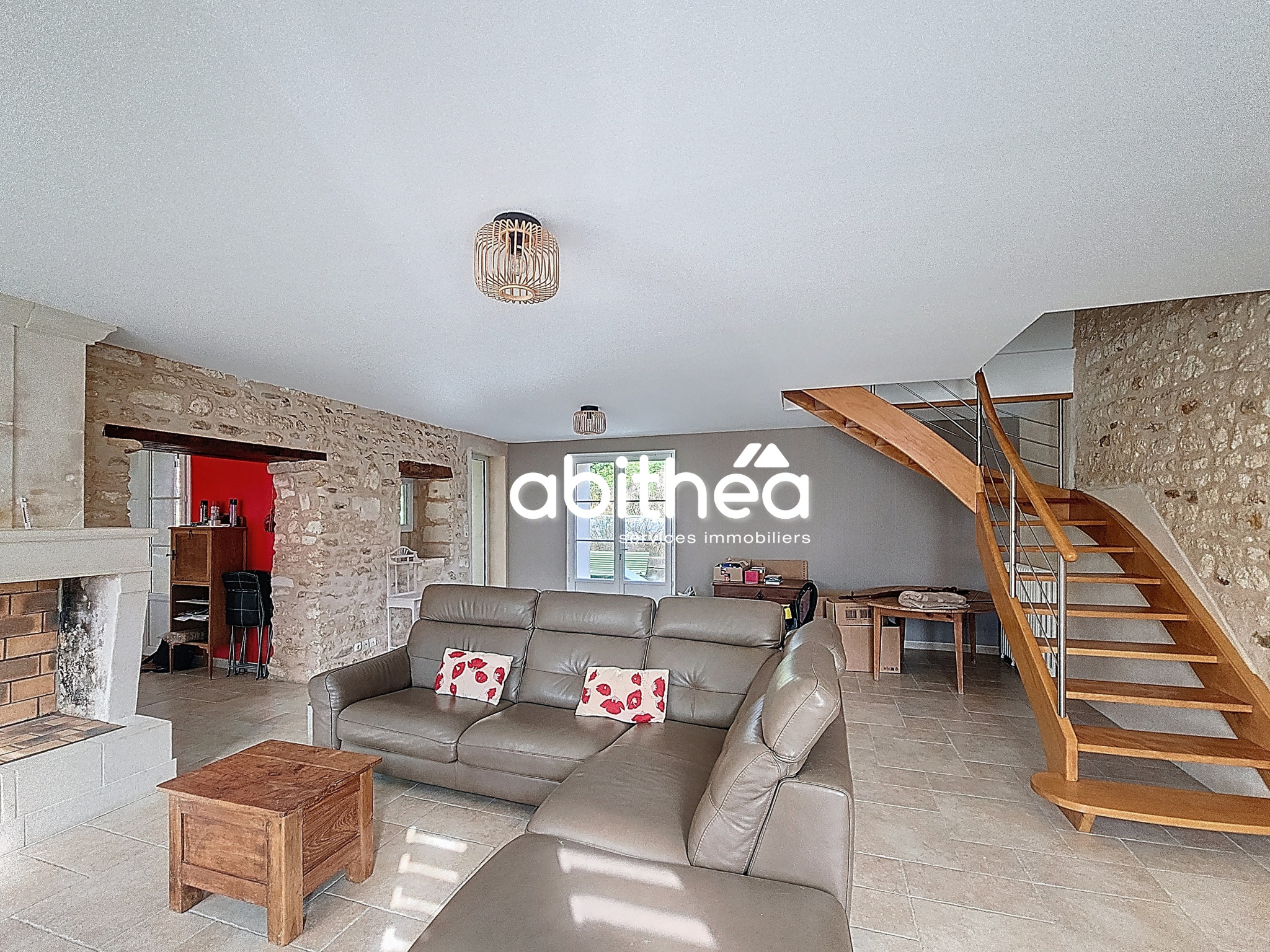 - une grande pièce de vie de 39m² avec cheminée,
