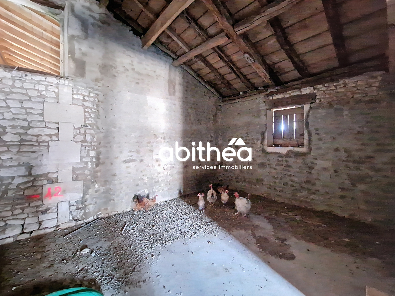Le hangar actuel avec sa magnifique charpente entièrement refaite pourrait facilement devenir votre manifique pièce à vivre de 75m² avec son plafond cathédrale...