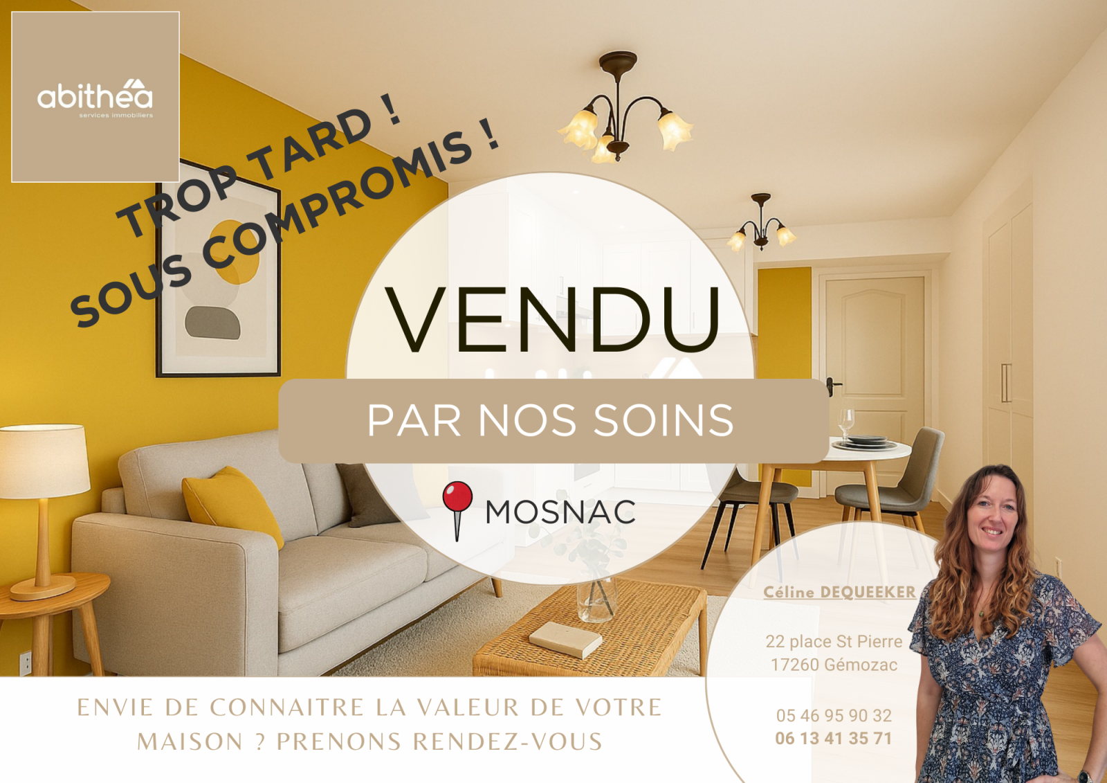 Abithéa Charente-Maritime est heureux de vous proposer, cette jolie maison de plain-pied des années 80 rénovée, dans le charmant village de Mosnac, à moins d'un kilomètre de l'école primaire, à moins de 10 minutes de Pons, Saint Genis de Saintonge, à moins de 20 minutes de Jonzac et Gémozac, et à 30 min de Cognac ou de Saintes.