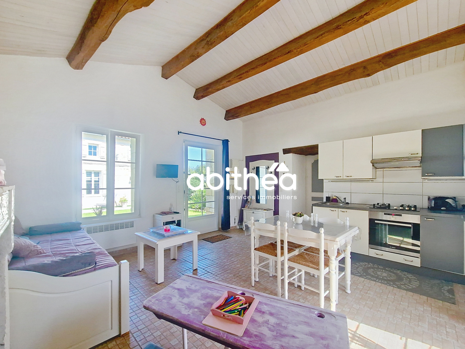 - d'une pièce à vivre avec cuisine aménagée et équipée,