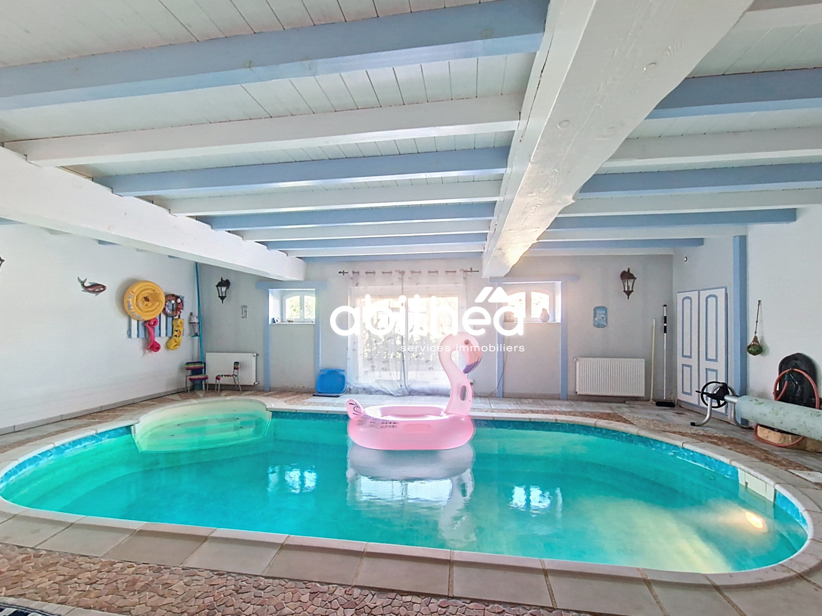 - d'un premier accès à la piscine intérieure, par électrolyse et chauffée vous offrira sérénité et confort toute l'année,