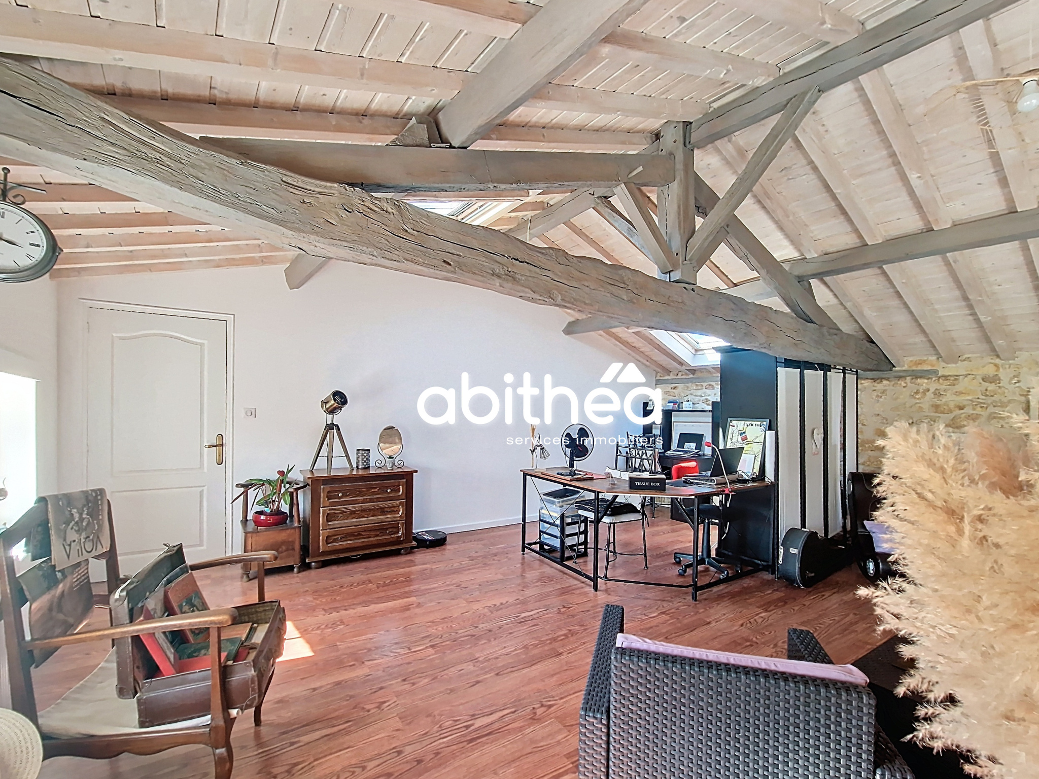 - La mezzanine bénéficie d'une superficie de 28,50 m² baignée de lumière grâce à ses châssis de toit,