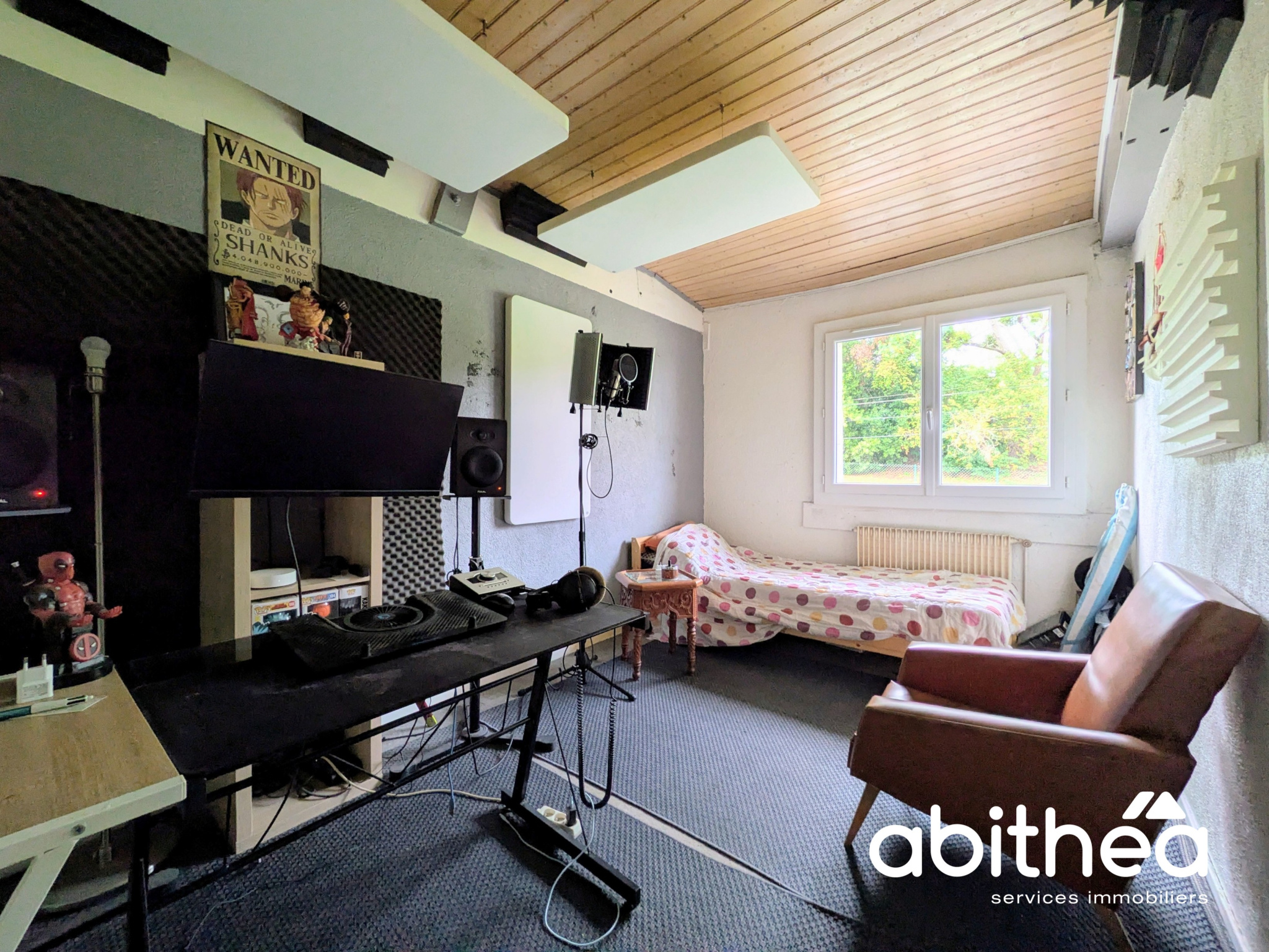 À l’étage, un palier distribue quatre chambres lumineuses, prêtes à accueillir famille, amis ou espaces de travail selon vos besoins. Une salle de bains à réaménager complète ce niveau, offrant un beau potentiel d’aménagement contemporain.