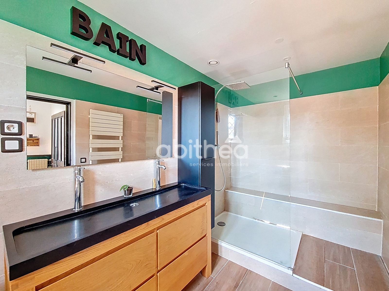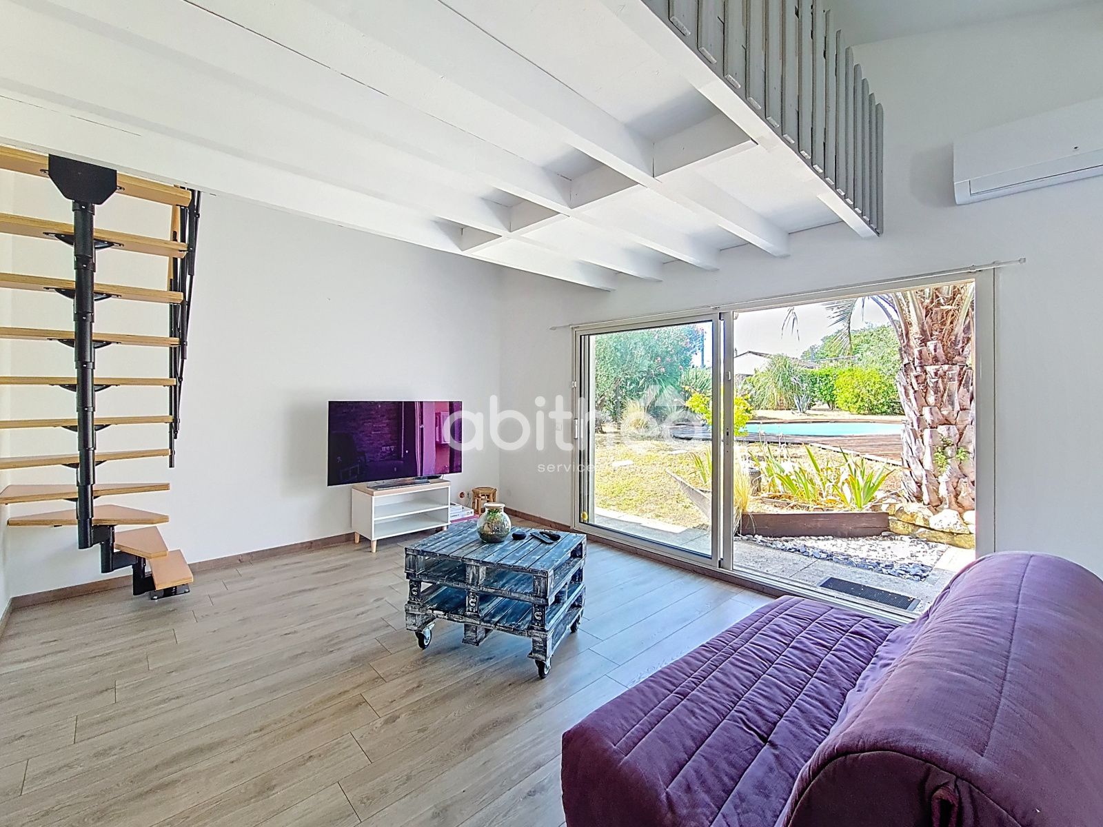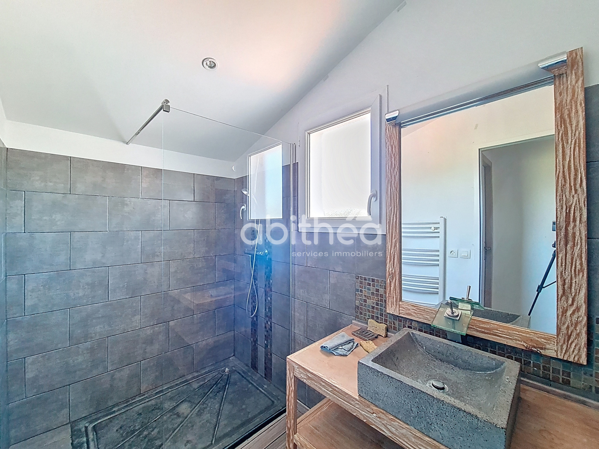 En complément du chauffage central au gaz de ville, la maison bénéficie de la climatisation réversible et de panneaux photovoltaïques.
