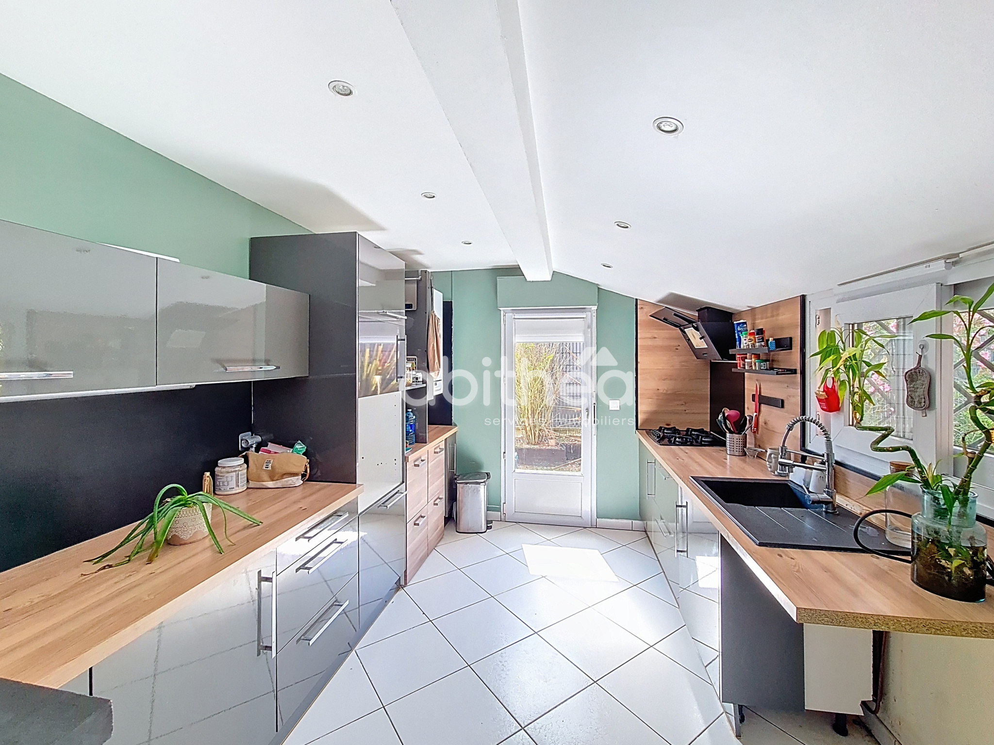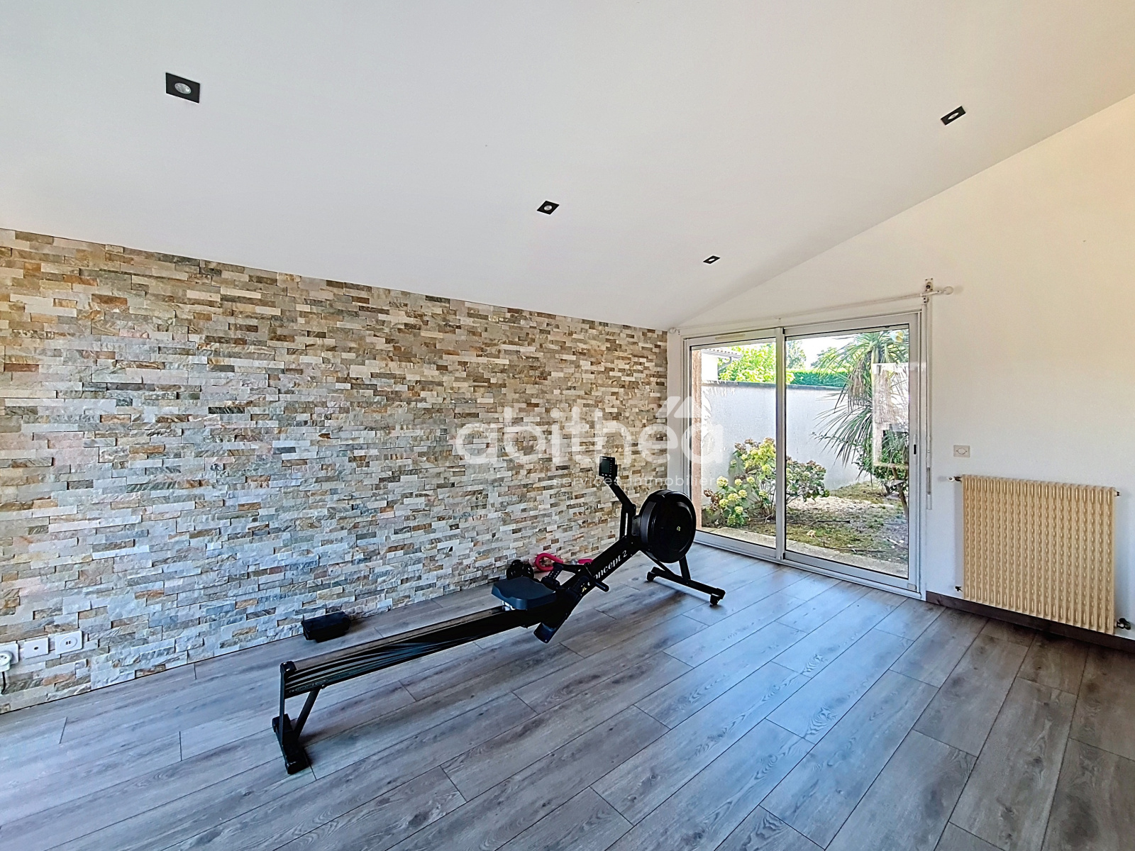 Non attenant à la maison un garage avec porte électrique télécommandée tout comme le portail coulissant.