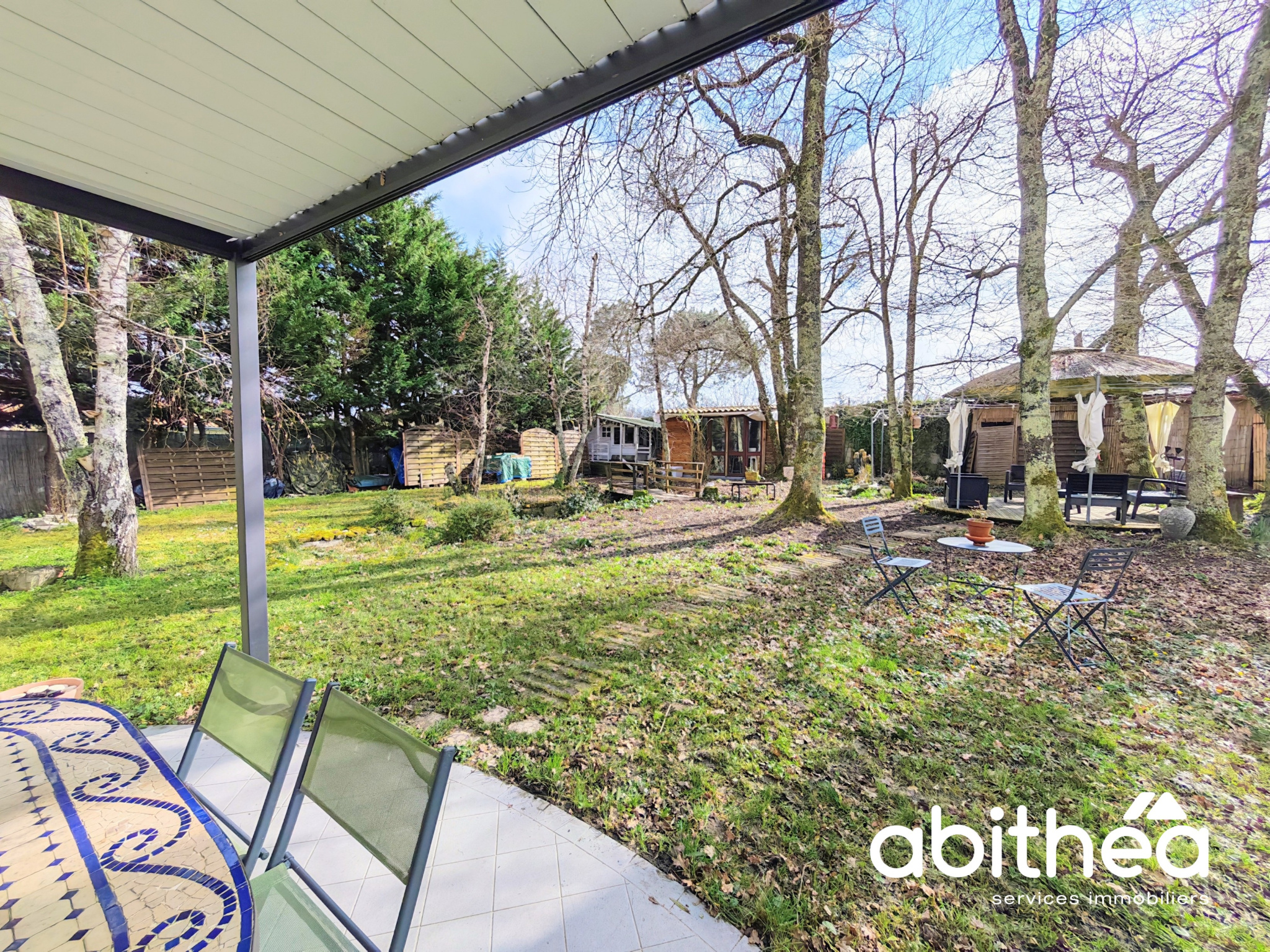 Mais c’est à l’extérieur que la magie opère pleinement. La maison s’inscrit dans un terrain clos et arboré qui compose un véritable écrin de nature. Le jardin, généreux et vivant, invite à ralentir. On imagine les petits-déjeuners au soleil, les longues soirées d’été sur l’une des terrasses, les rires des enfants courant vers leur cabane en bois. Les arbres offrent ombre et fraîcheur, le regard se pose sur la verdure, et l’on savoure ce sentiment rare d’espace et de tranquillité.