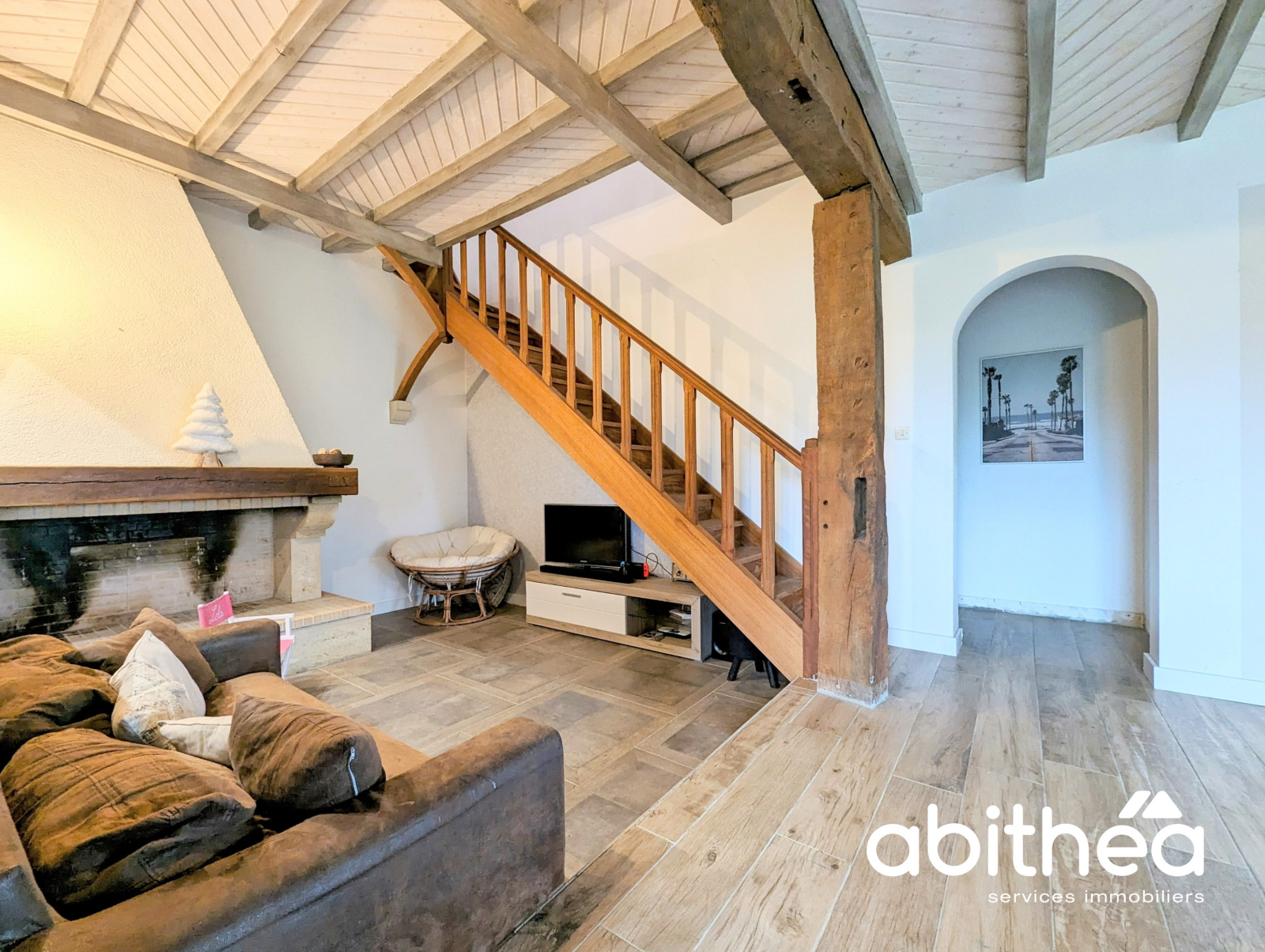 Dès votre entrée, vous découvrirez une grande pièce de vie avec sa cuisine ouverte flambant neuve, son coin TV en demi niveau avec sa cheminée et pour ceux qui sont adeptent du télétravail, un bureau juste pour vous situé dans la tour de la maison !