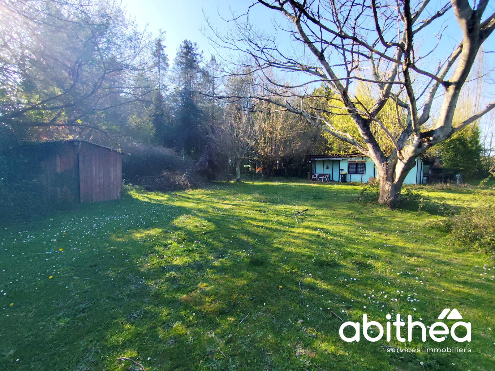 Un chalet d’environ 60 m² est également présent sur le terrain, offrant un espace supplémentaire pouvant servir de stockage, d’atelier ou être réaménagé selon vos besoins et votre projet.