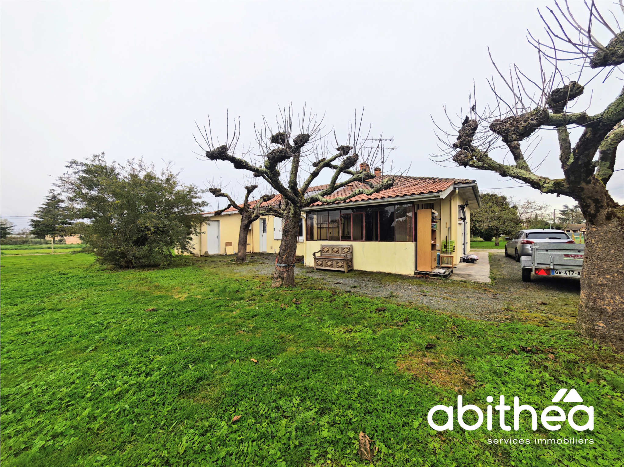 Saint-Médard-de-Guizières (33230)L’agence Abithéa Libourne vous propose en exclusivité, à Saint-Médard-de-Guizières, cette maison de 102 m² s’installe simplement, au calme des champs qui l’entourent. Pas de panorama spectaculaire, mais un environnement champêtre, ouvert, où l’on profite d’un peu d’espace autour de soi. Et pourtant, en 10 minutes à pied seulement, le centre-ville s’offre à vous : les commerces, l’école, la gare, les services du quotidien. Un équilibre rare, surtout à ce niveau de prix.