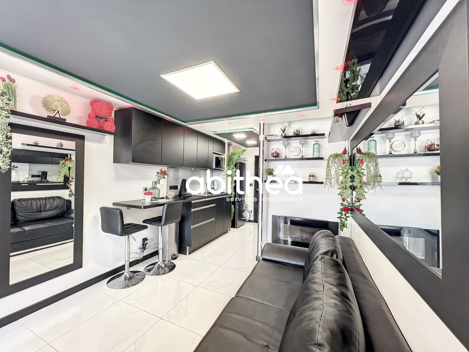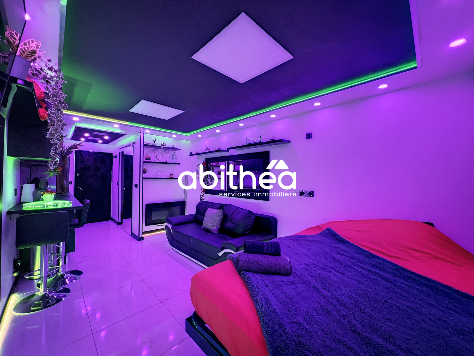 Décoré avec soin dans un style moderne, épuré et romantique, l’appartement est également doté d’un éclairage LED multicolore, personnalisable selon vos envies pour créer l’atmosphère parfaite.