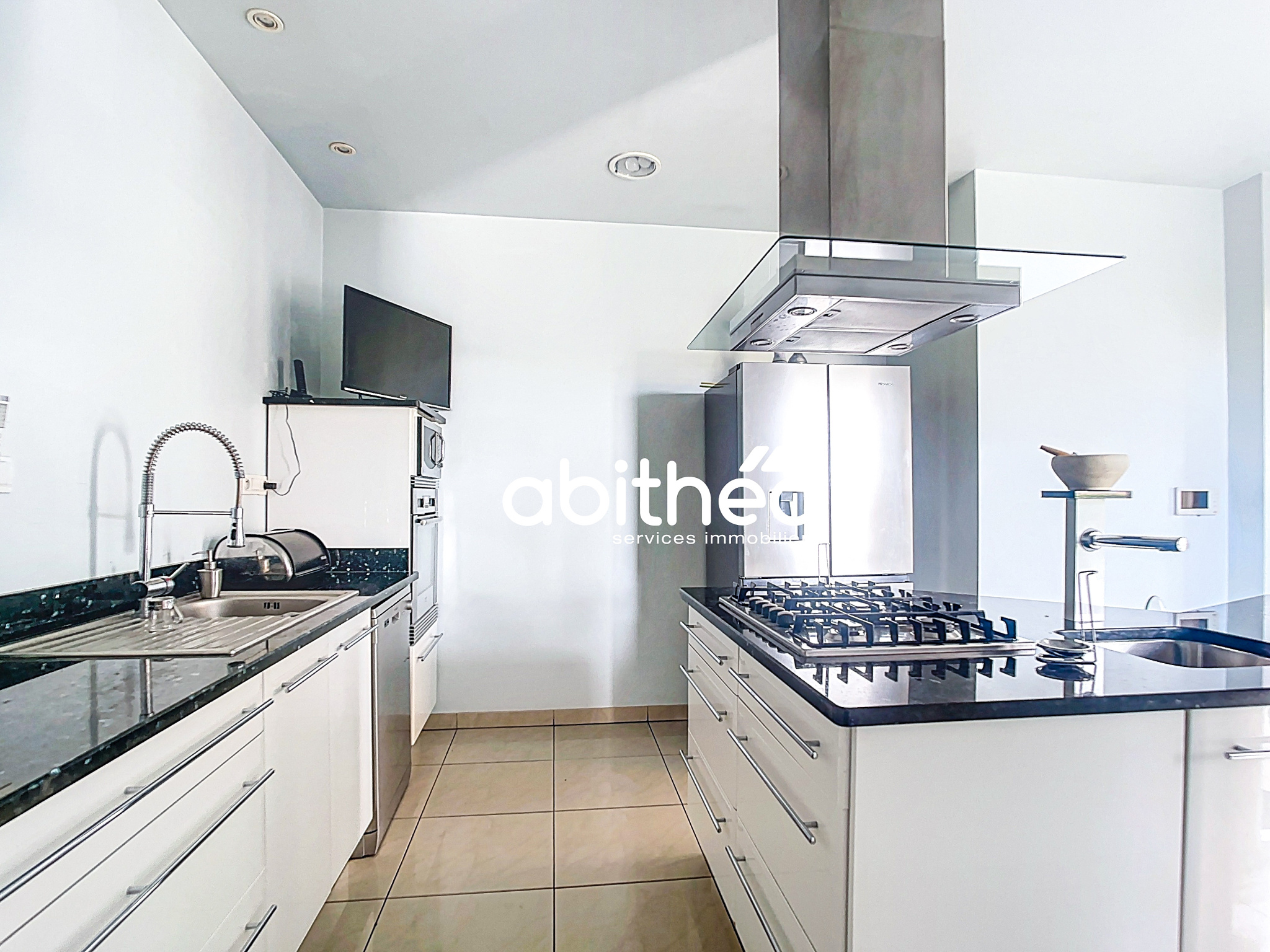 La maison dispose également d’une cuisine indépendante entièrement équipée, avec îlot central en granit, prolongée par une grande buanderie très fonctionnelle.