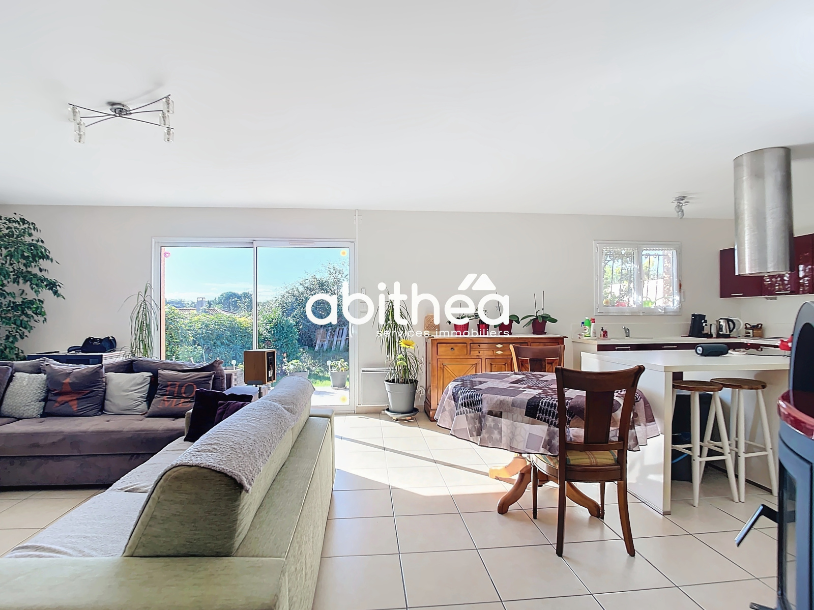 Entrez dans cette maison et vous découvrirez un bel espace de vie lumineux ouvert sur une cuisine américaine, équipée et aménagée et son îlot central, et un coin séjour avec baies vitrées donnant sur une grande terrasse orientée Sud.