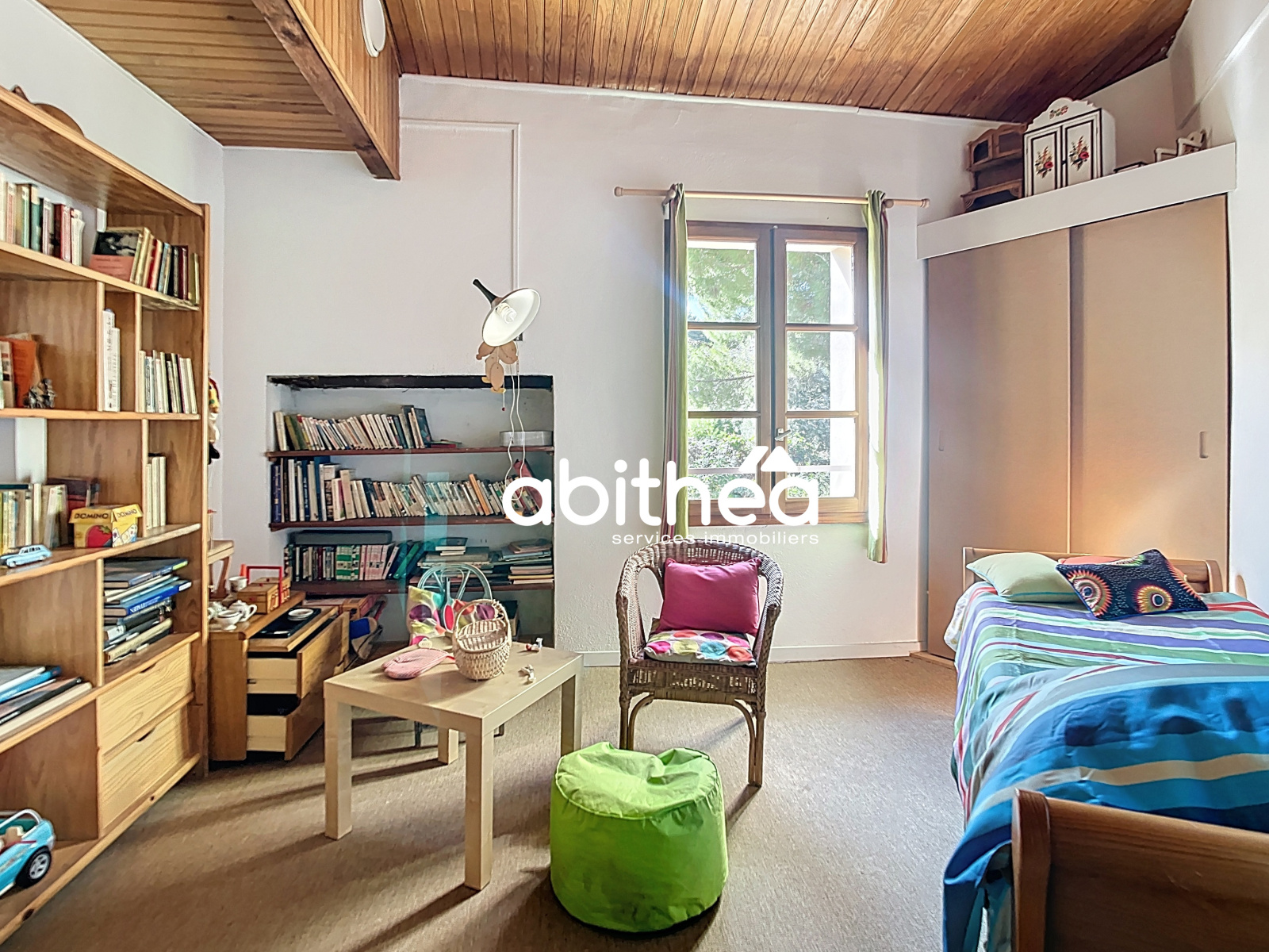 Au premier étage, vous profiterez d'un séjour avec poêle bois et couvert sur une cuisine entièrement équipée, le tout avec un accès direct à un magnifique jardin arboré et sans vis à vis. Cet extérieur est parfait pour profiter de moments calmes et y créer un petit havre de paix !