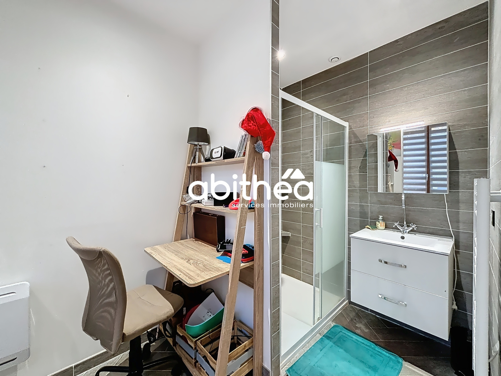 Vous trouverez également sur ce niveau un studio indépendant avec sa kitchenette ainsi qu’une une salle d’eau avec WC, à finir d’aménager.