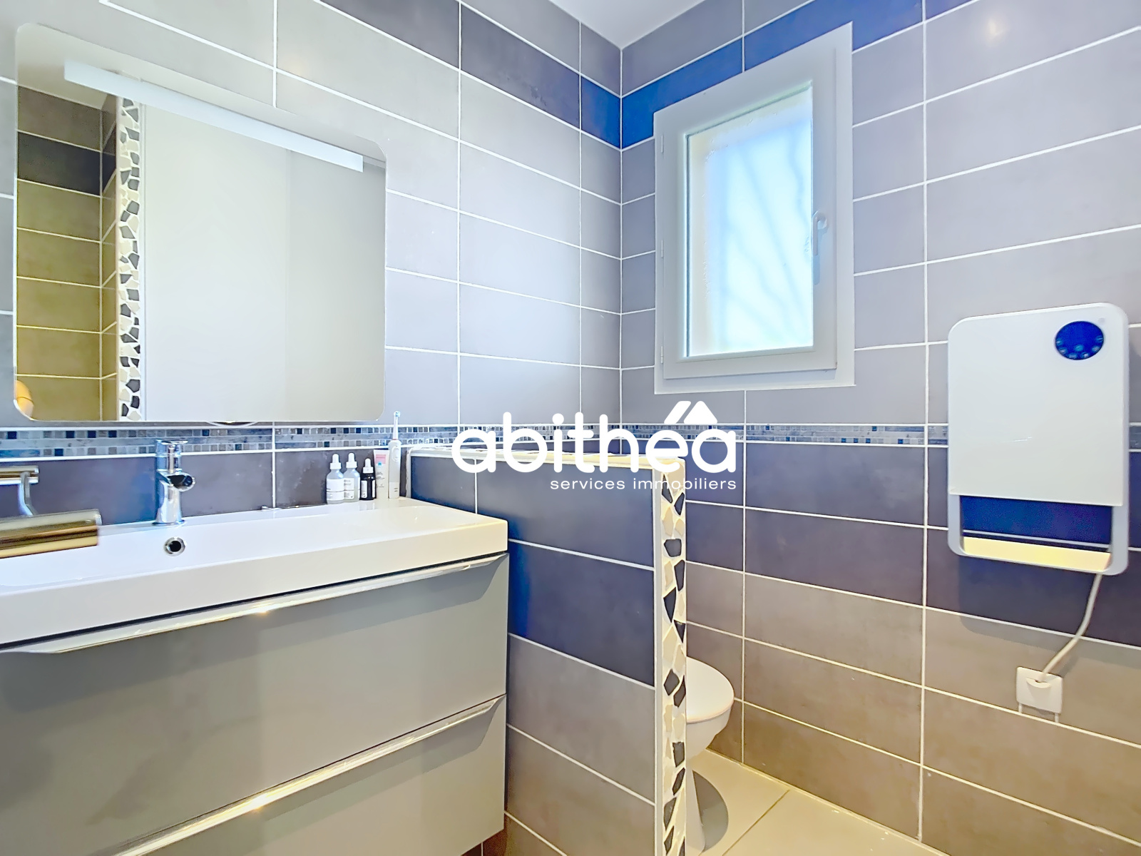 Au rez-de-chaussée (semi plain-pied), la villa dispose de quatre chambres d’environ 12 m² chacune ainsi que d’une salle d’eau avec douche à l’italienne. Cet espace est parfaitement adapté à une famille, à l’accueil de proches ou à l’aménagement de pièces dédiées au télétravail ou aux loisirs.