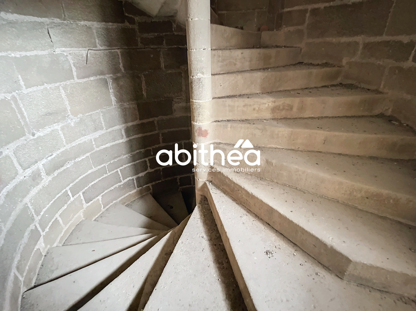 La bâtisse principale, d’une surface de plus de 350 m² répartis sur 4 niveaux, nécessite d’importants travaux de rénovation. Chargée d’histoire — elle abritait autrefois une armurerie — elle conserve de magnifiques éléments anciens, notamment un escalier remarquable desservant l’ensemble des niveaux.