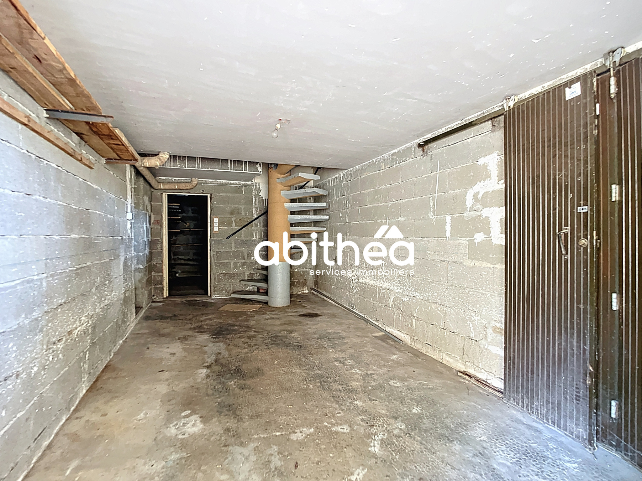 La maison dispose d'un escalier menant au sous sol, offrant un garage d'environ 20 m² ainsi que de plusieurs espaces pouvant servir d'ateliers ou de cave.