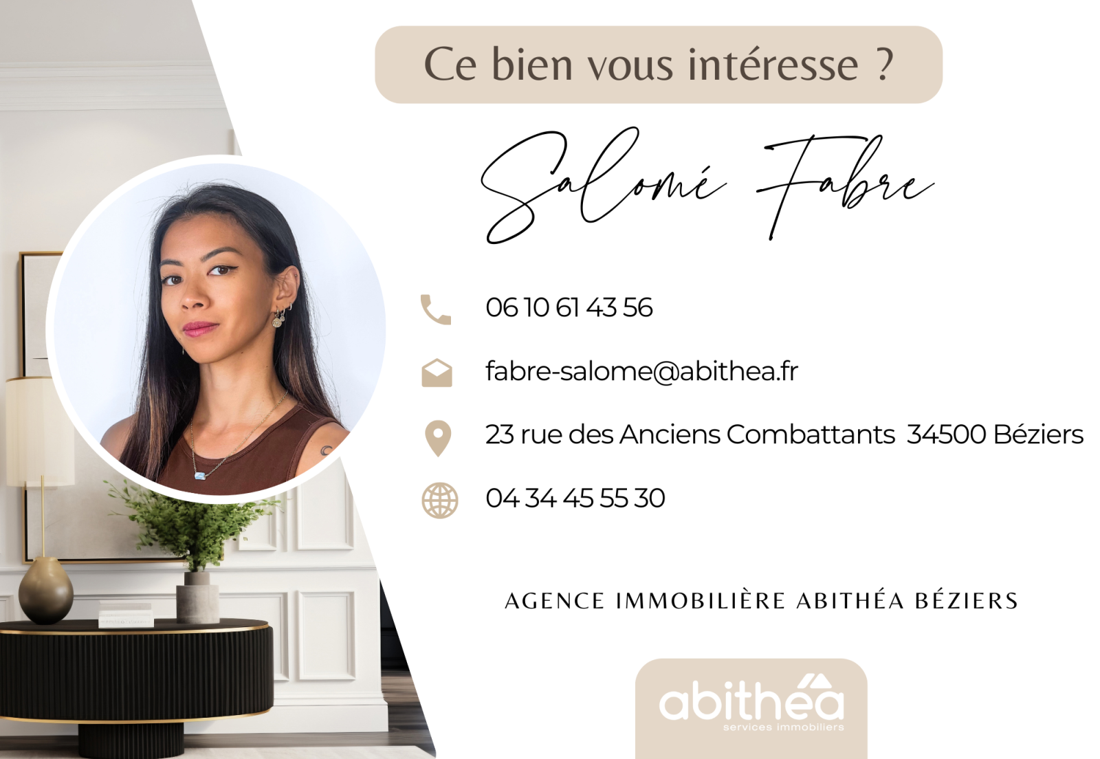 Contact : Salomé FABRE agissant en sa qualité d’agent commercial inscrit au Registre spécial des Agents commerciaux sous le numéro 897 875 787 R.S.A.C. Béziers.