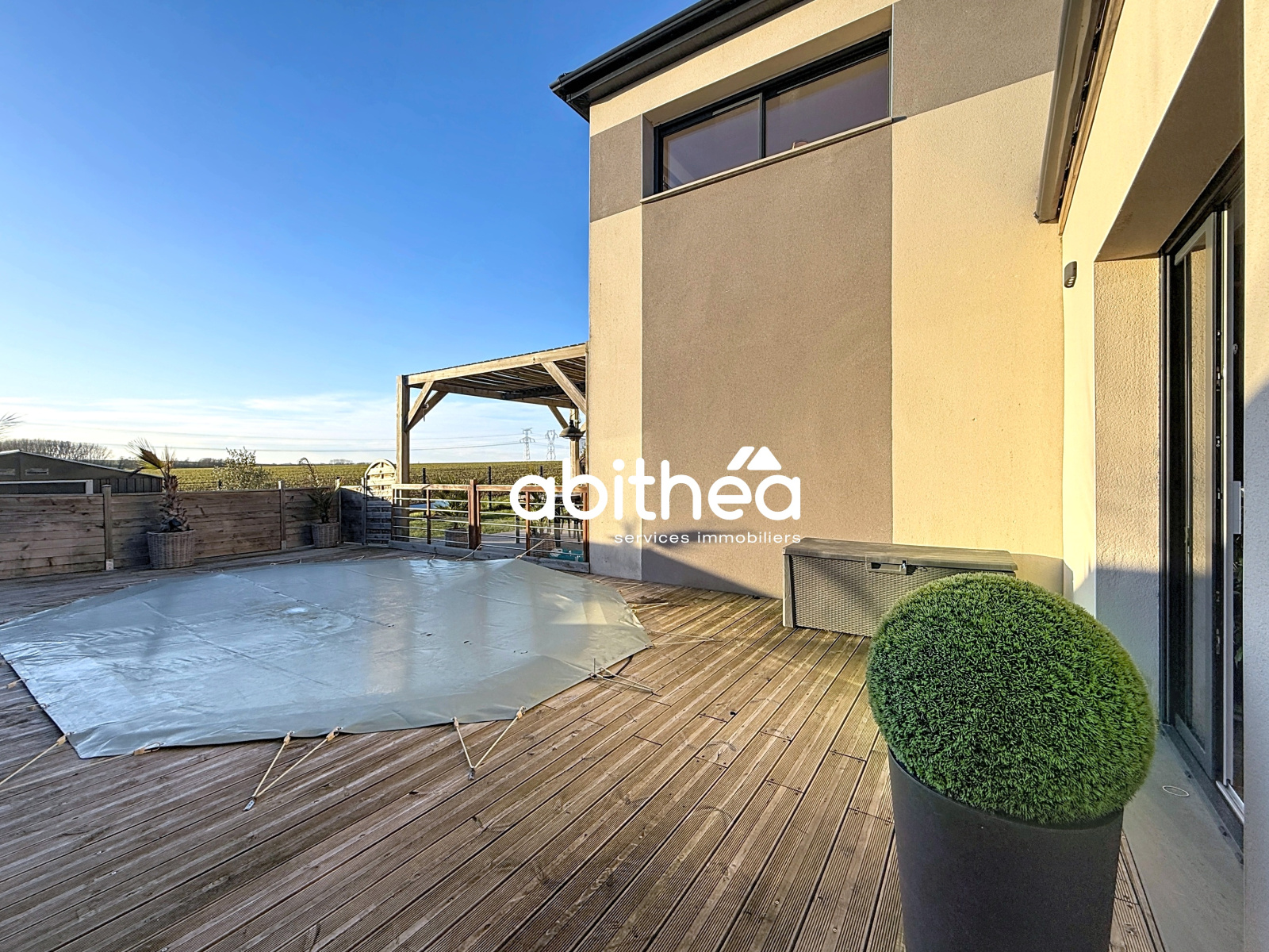Cette maison individuelle de 170 m2, construite en 2014, conforme à la RT 2012, est implantée sur une parcelle d’un peu plus de 500 m². Une maison agréable à vivre, bien pensée pour le quotidien, offrant un cadre familial harmonieux et très lumineux.