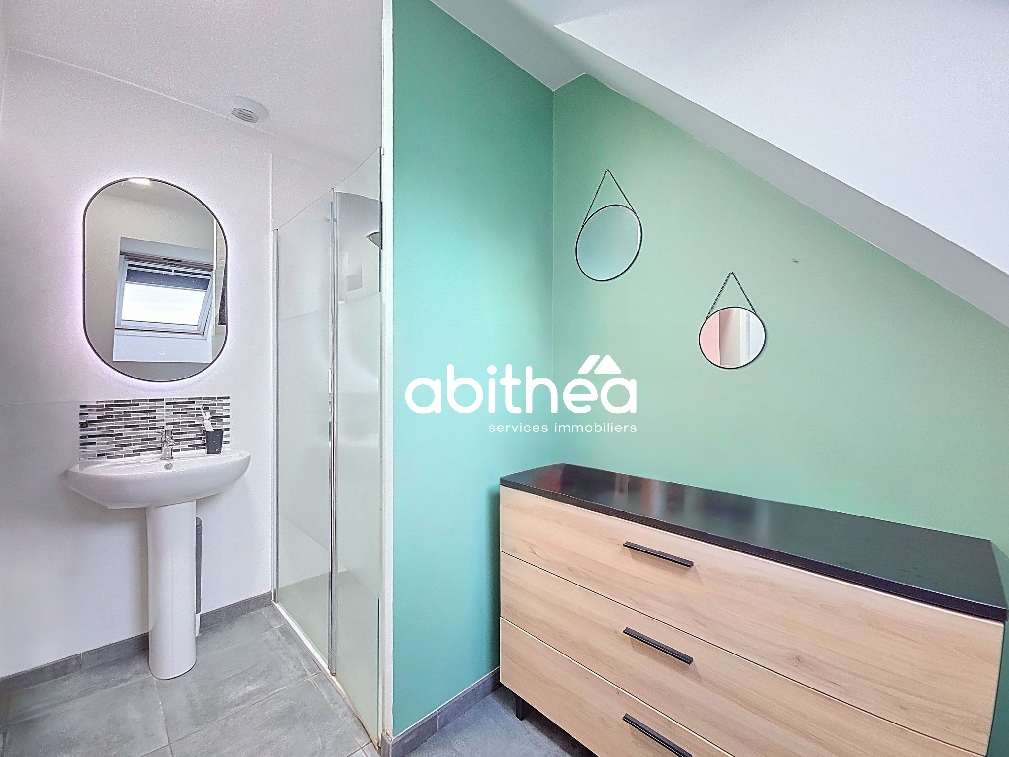 Dès l’entrée, la hauteur cathédrale crée une sensation d’espace et de lumière qui se prolonge dans une pièce de vie d’environ 48 m², composée d’un salon chaleureux et d’une cuisine équipée ouverte sur le jardin. L’ensemble est particulièrement lumineux grâce à ses larges ouvertures. Un espace buanderie complète le rez-de-chaussée, avec la possibilité d’y aménager une salle d’eau supplémentaire si nécessaire.