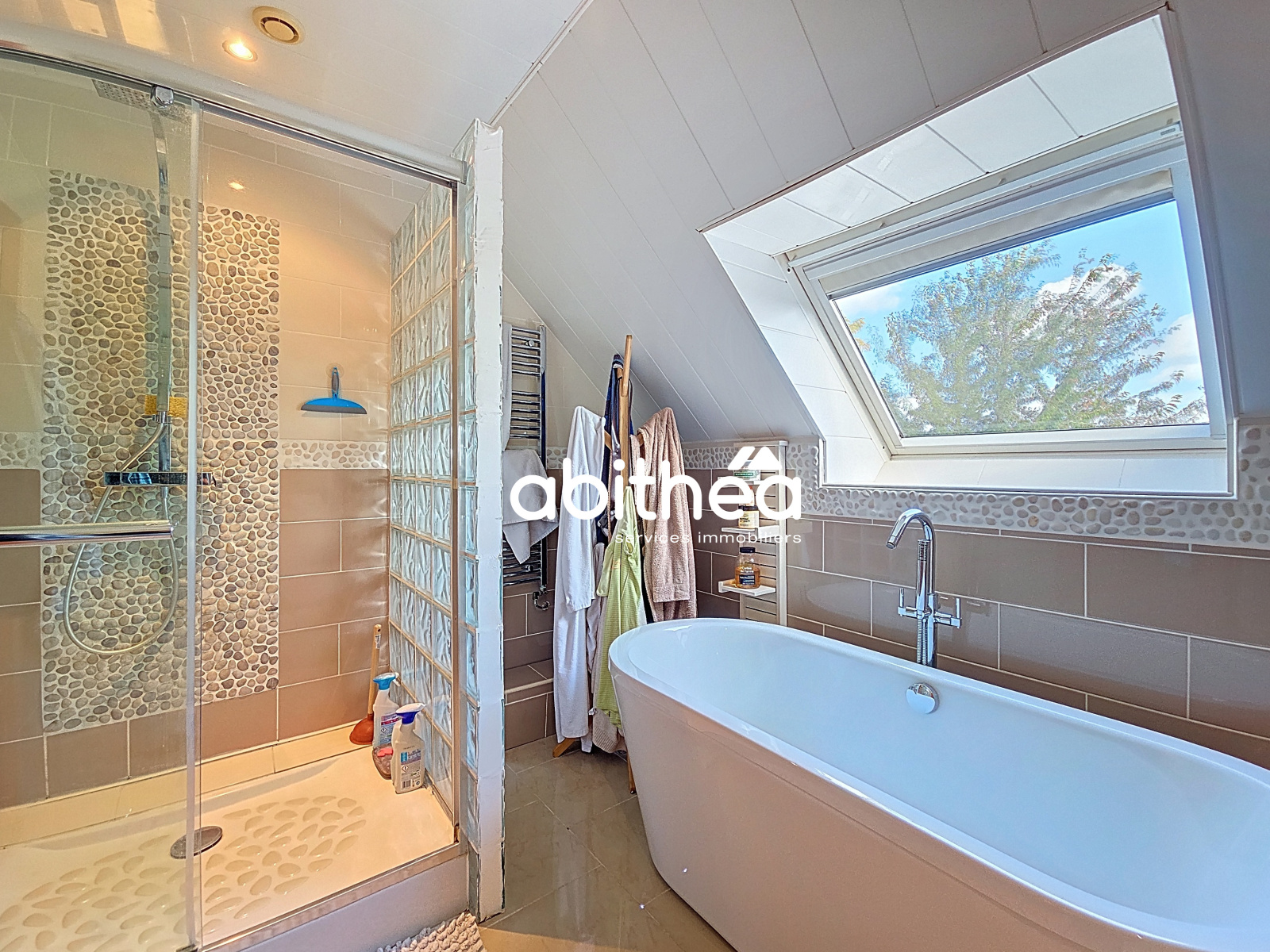 L’étage se compose de quatre chambres confortables d'une superficie comprise entre 14 et 16 m². Deux disposent d’un point d’eau et une troisième bénéficie d’une arrivée et d’une évacuation, laissant la possibilité d’aménager l’espace selon les besoins. Une spacieuse salle de bain complète ce niveau, équipée d’une douche, d’une baignoire et d’une double vasque.