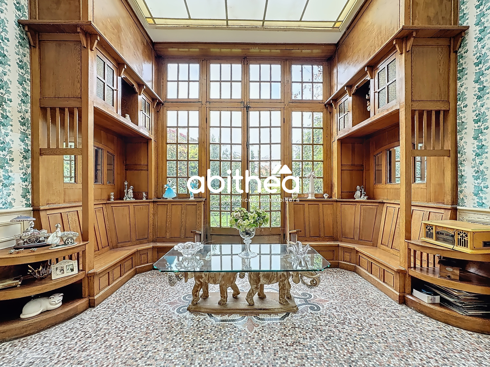 Cette maison au cachet préservé vous acceuille dès l'entrée par un vaste hall avec son escalier d'origine, le marbre en sous-bassemnt et son carrelage mosaique au sol. Celui-ci dessert un salon/séjour de 43 m2 accompagné d'un deuxième salon de 17 m2 conservant toute son authenticité avec ses hauts plafonds, ses moulures et ses planchers bois chevron. Vous apprécierez la cuisine fonctionnelle de 13m2, attenant d'un cellier/buanderie de 7m2, donnant sur une agrèable véranda de 10m2. Un atout qui offre une vue et un accès sur le jardin de 400m2.