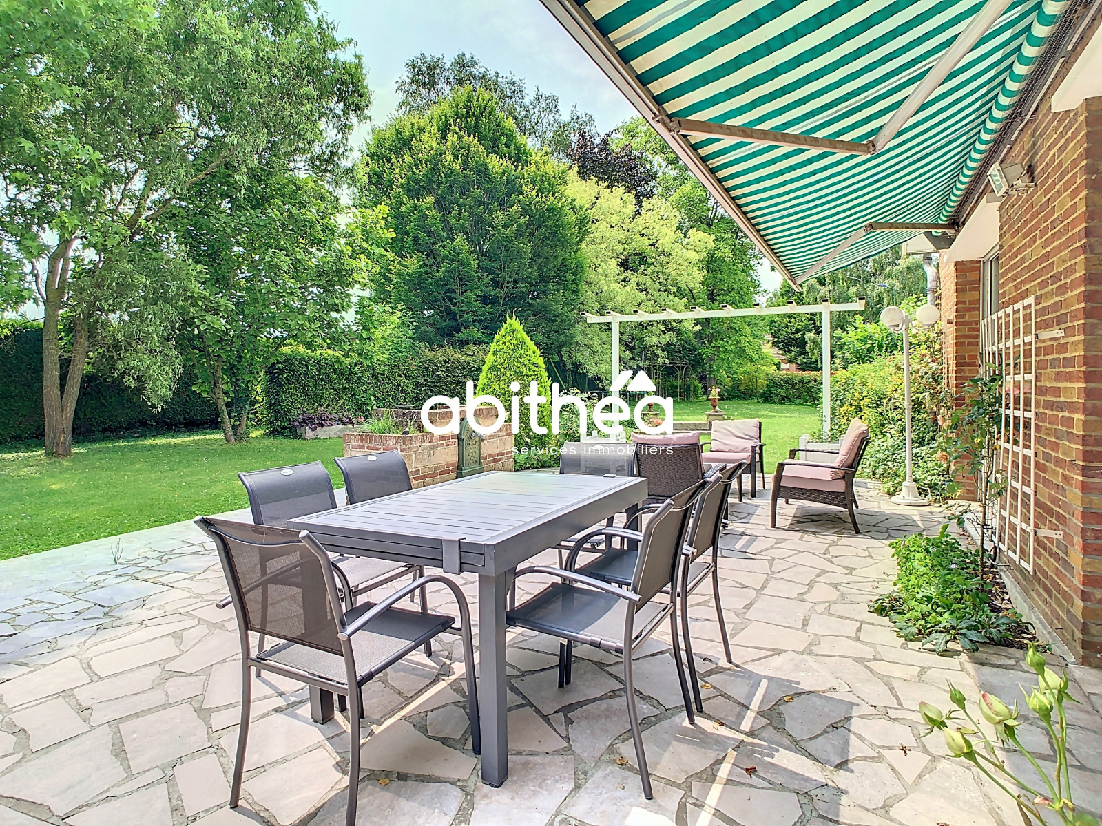 Une jolie entrée dessert un salon séjour de 43 m2 avec de beaux éléments (parquet, cheminée, ..) avec vue imprenable sur un jardin arboré et entretenu, rien de tel pour se détendre et recevoir agréablement. Une cuisine équipée de bonne taille s'intégre très bien dans le style de la maison et s'ouvre sur une incroyable véranda de 60 m2 établie en 2008.