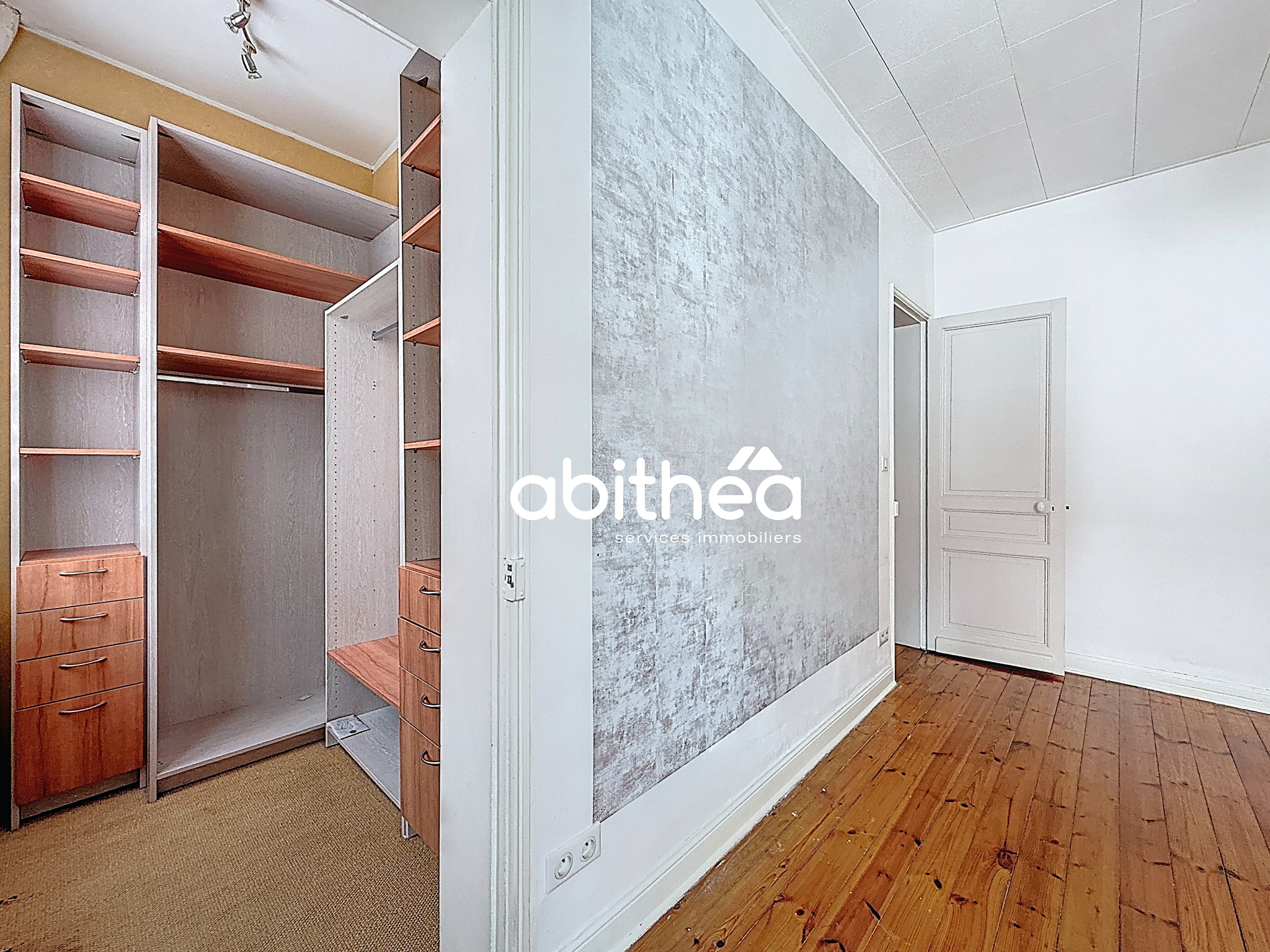 Au premier étage, un palier avec plancher d’origine dessert deux grandes chambres (15 et 19m2) avec placards et dressing intégrés, optimisant l’espace, ainsi qu’une salle d’eau avec WC de plus de 6m2.
