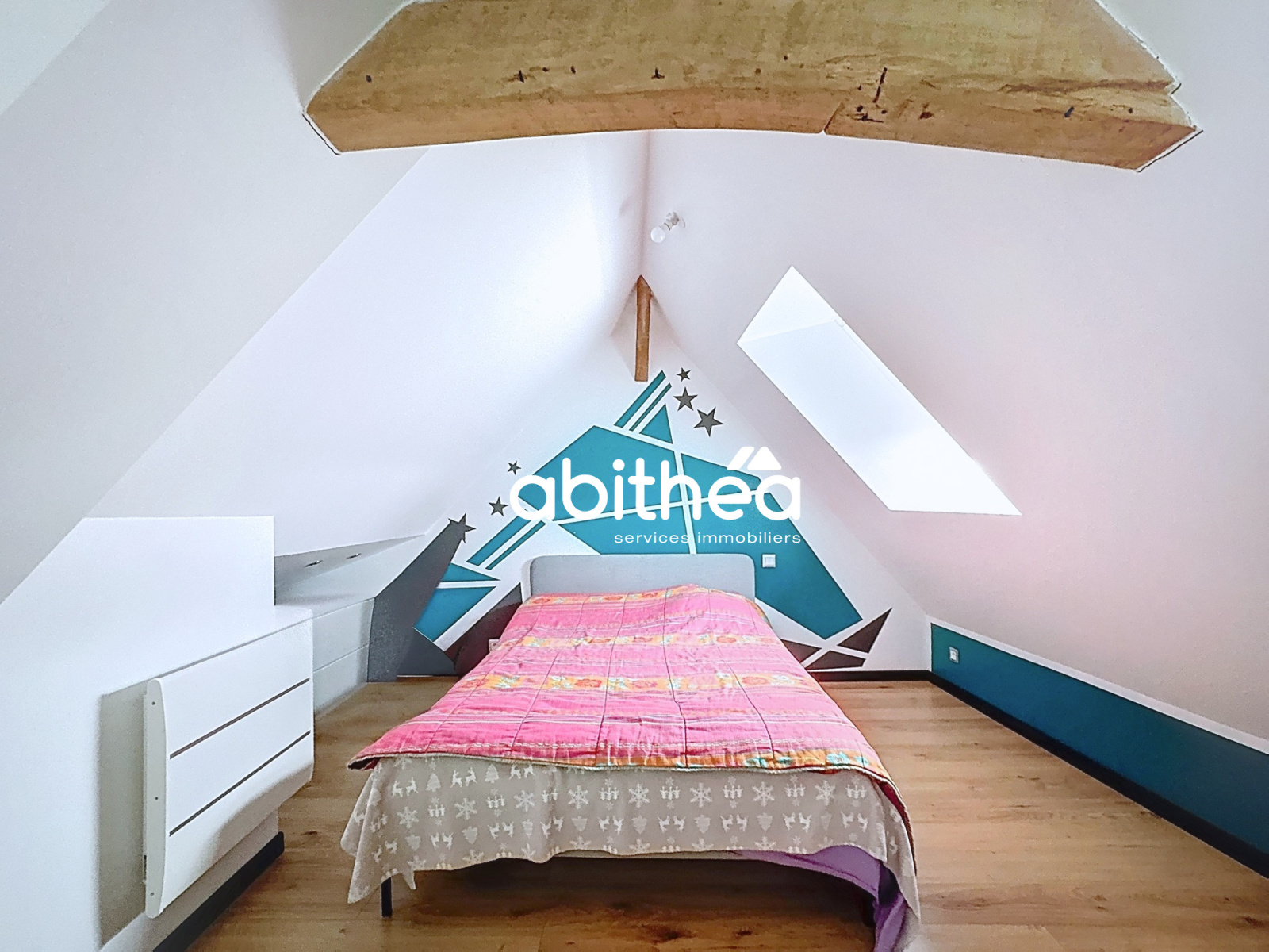 A l'étage, le palier dessert une 1ère chambre de 14m2 au sol ainsi qu'une deuxième chambre de 15m2 au sol, suivi d'un espace bureau/couchage/salle de jeux de 14m2 au sol.