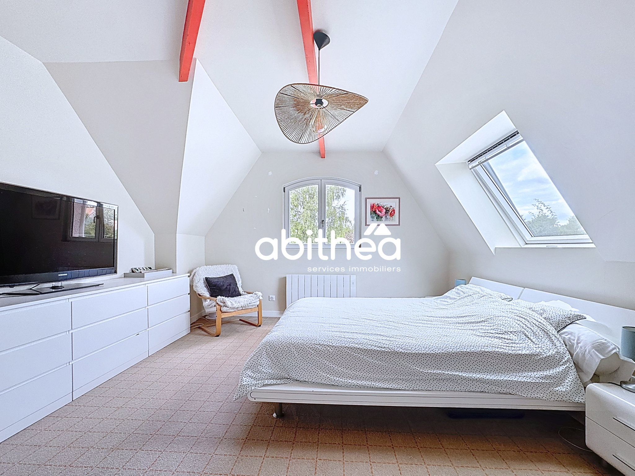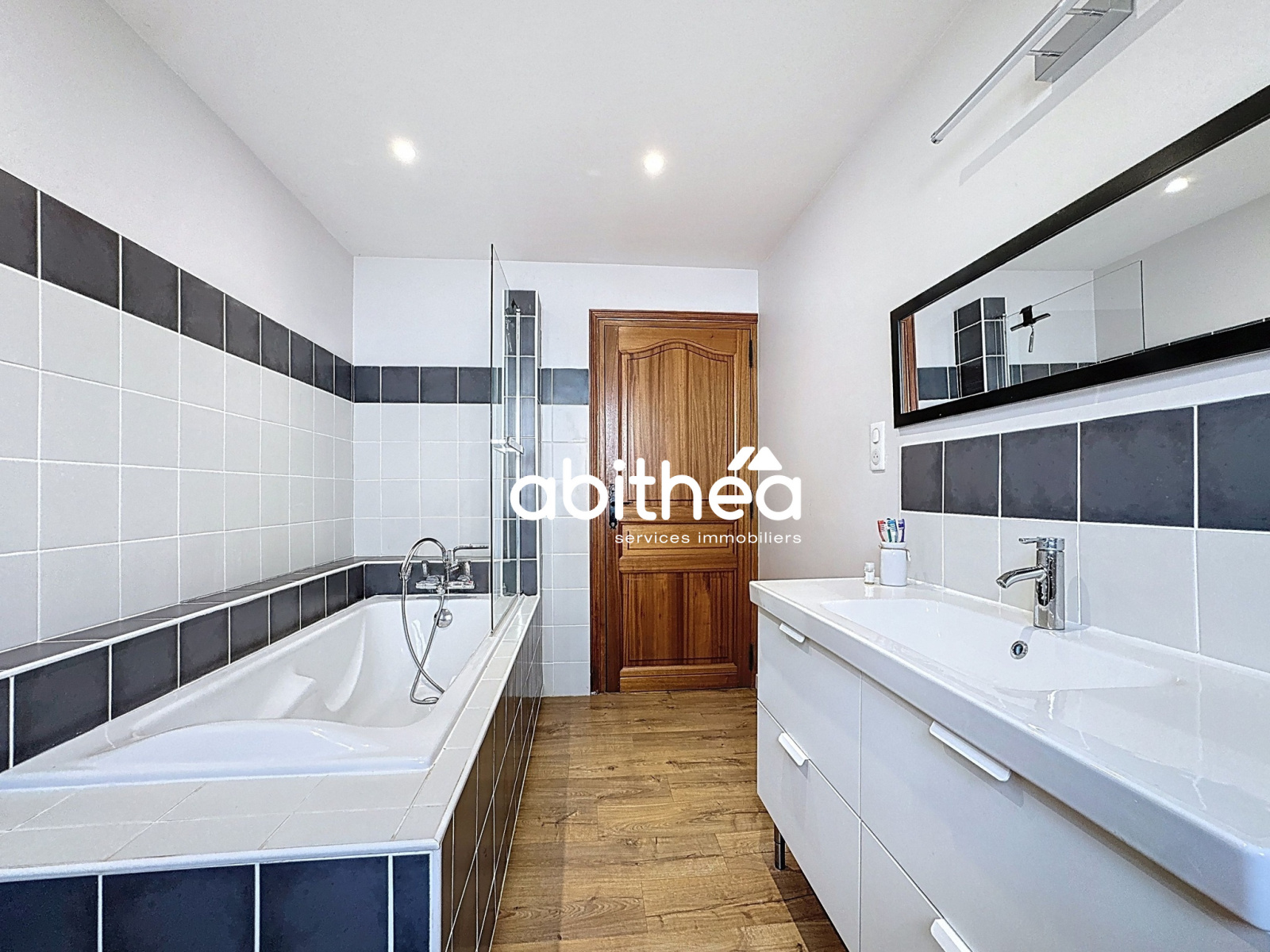 L’étage se compose de deux grandes chambres comprises entre 14 et 19 m² habitables (jusqu’à 20 m² au sol), dotées d’un plafond cathédrale, ainsi que d’une mezzanine de 19 m² habitables / 28 m² au sol, idéale pour un espace bureau, détente ou salle de jeux. Une deuxième salle de bain, récemment rénovée, est équipée d’une douche et de deux meubles simple vasque, ainsi qu’un WC individuel supplémentaire.