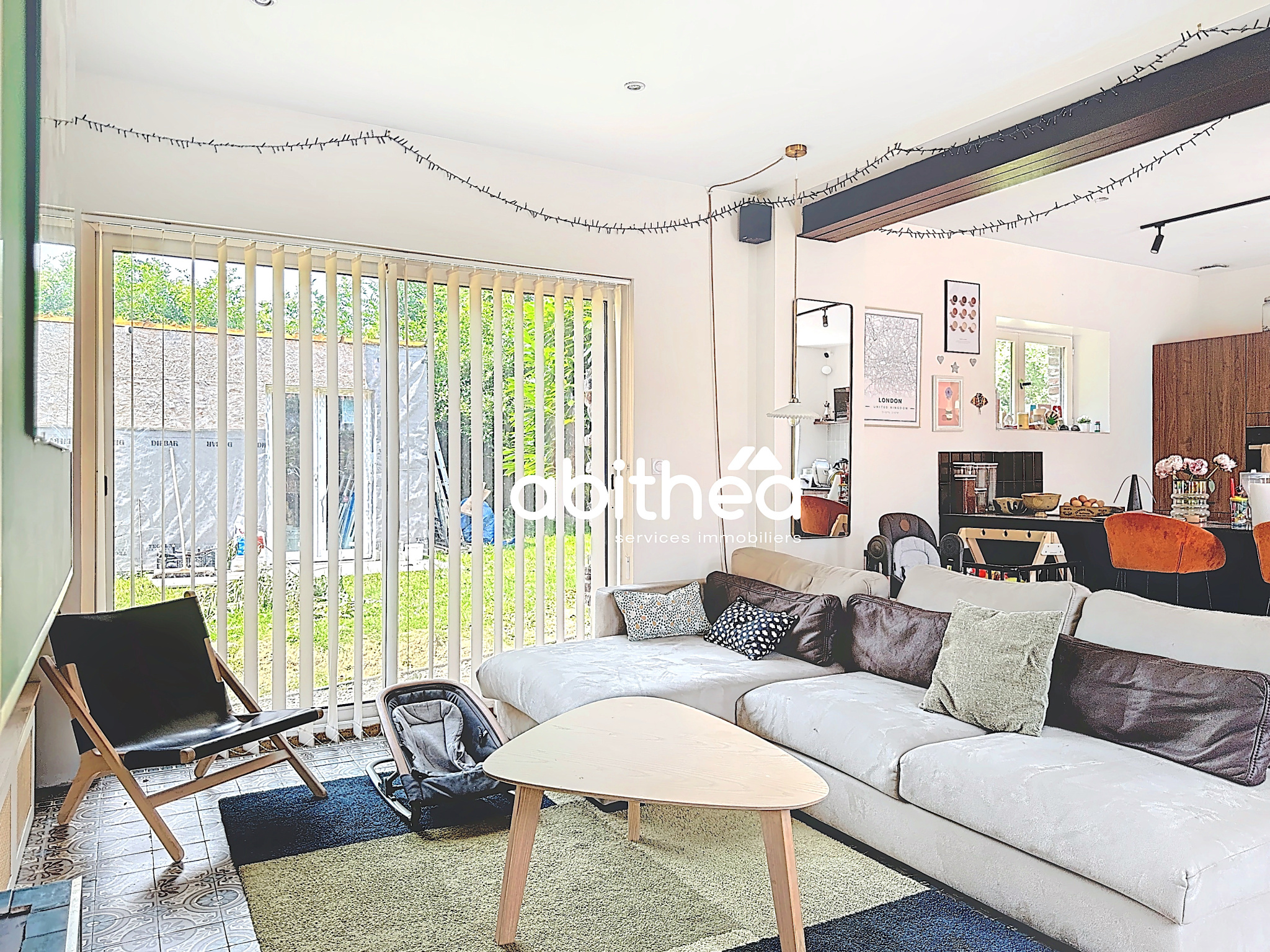 En franchissant le seuil, vous serez immédiatement séduit par ses volumes et la disposition intelligente des différentes pièces. L'entrée dessert un WC ainsi que le coin buanderie attenant à la cuisine aménagée et équipée. L'espace de vie, quant à lui, s'étend sur plus de 41 m² et bénéficie d'une luminosité traversante grâce à une baie vitrée d'un côté et à une porte donnant sur la terrasse de l'autre. Une belle cheminée avec conduit, équipée d'une soufflerie, assure un chauffage optimal de l'ensemble de la maison.