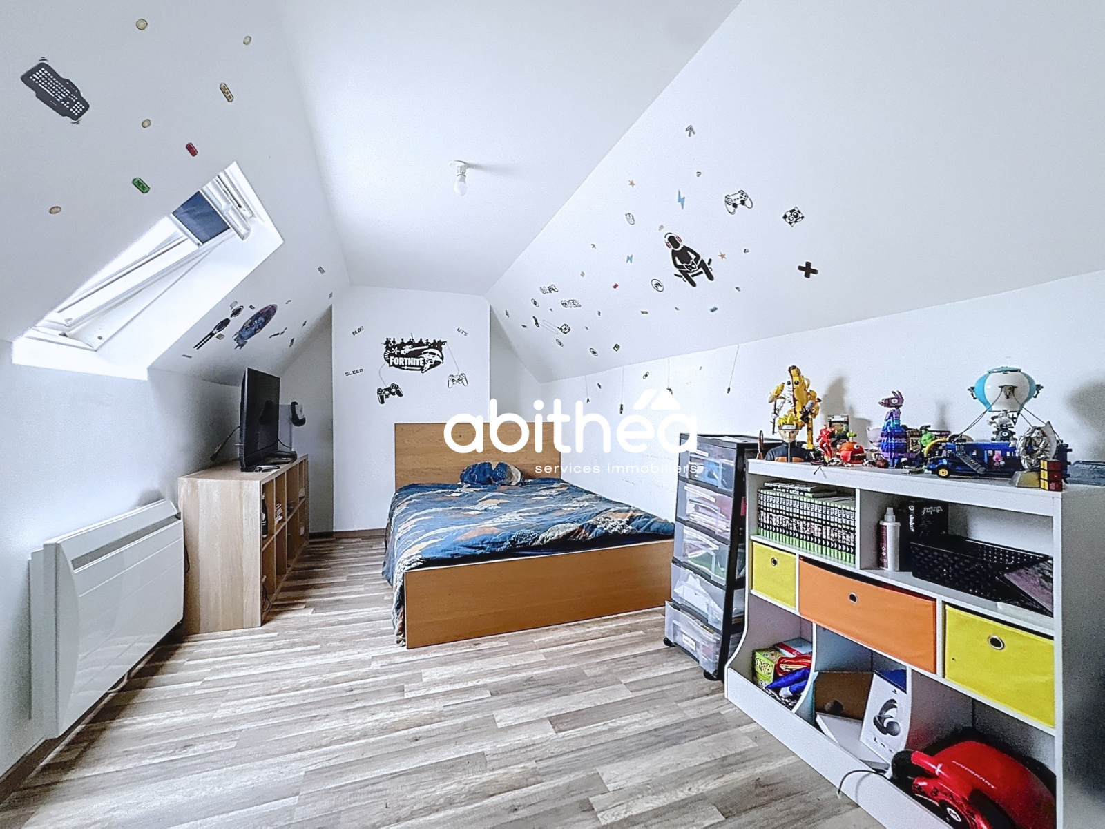 A l'étage, le palier dessert une 1ère chambre de 14m2 au sol ainsi qu'une deuxième chambre de 15m2 au sol, suivi d'un espace bureau/couchage/salle de jeux de 14m2 au sol.