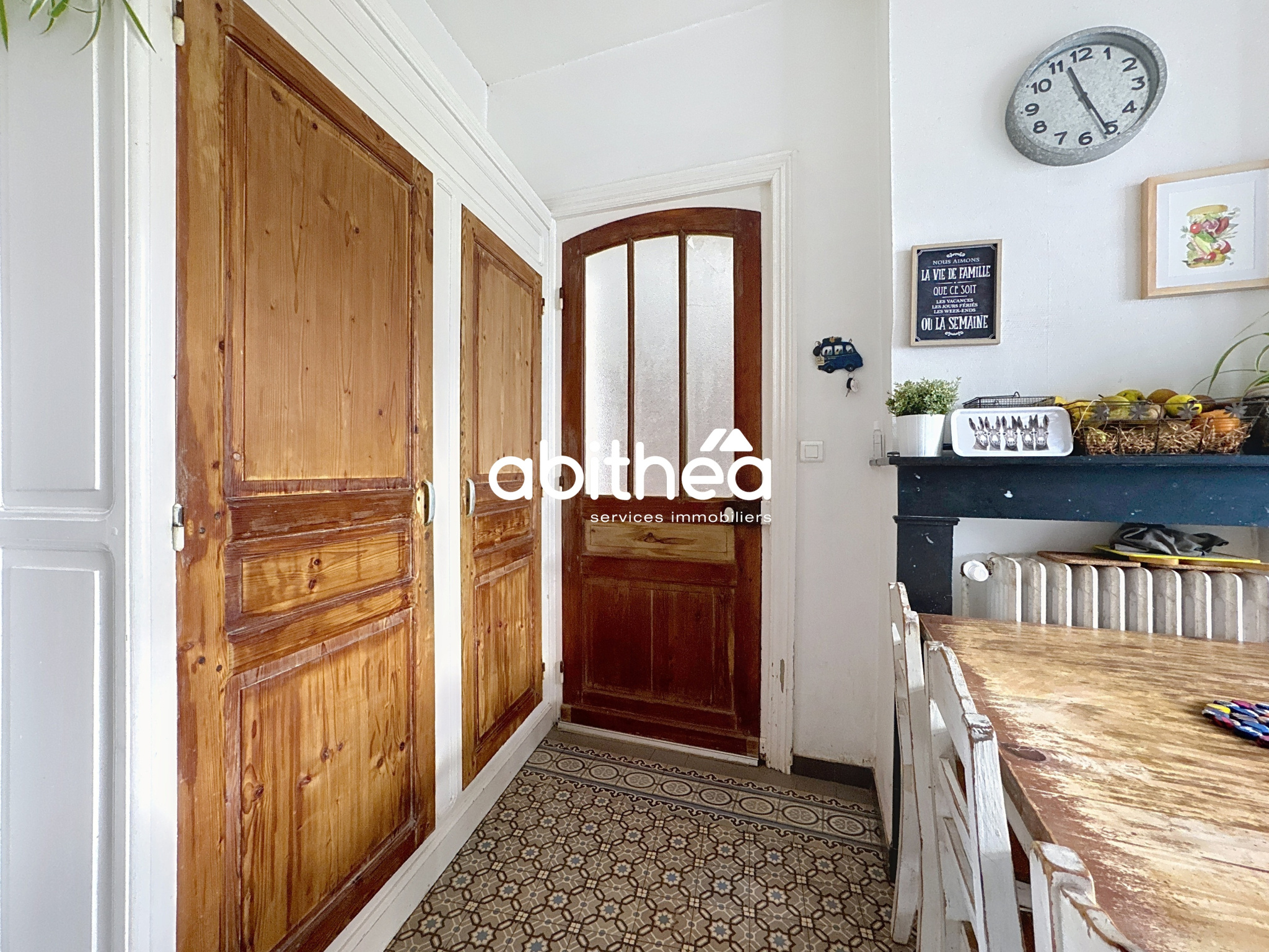 En effet, une fois que vous aurez franchi le seuil de la porte, vous serez immédiatement conquis par une belle entrée, ornée de carreaux de ciment et de moulures au plafond. Vous trouverez d'un côté un espace salon/salle à manger de 57 m², offrant un cadre agréable et lumineux grâce notamment à ses grandes ouvertures, sa cheminée et son parquet massif. De l'autre côté, vous y trouverez, une pièce de 12,36 m² servant actuellement de bureau mais que vous pouvez moduler à votre convenance, ainsi qu'un WC.