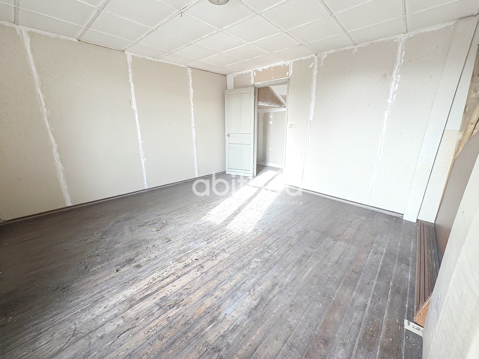 Dès l’entrée, la maison dévoile un espace aujourd’hui configuré comme un ancien local commercial, disposant d’une vitrine sur rue, apportant luminosité et visibilité. Cette configuration offre de nombreuses possibilités selon les projets : elle peut être repensée en véritable espace de vie familial, en bureau indépendant, ou encore en activité professionnelle libérale, tout en conservant une partie habitation confortable. En enlevant les cloisons on obtient une première pièce de 38m2