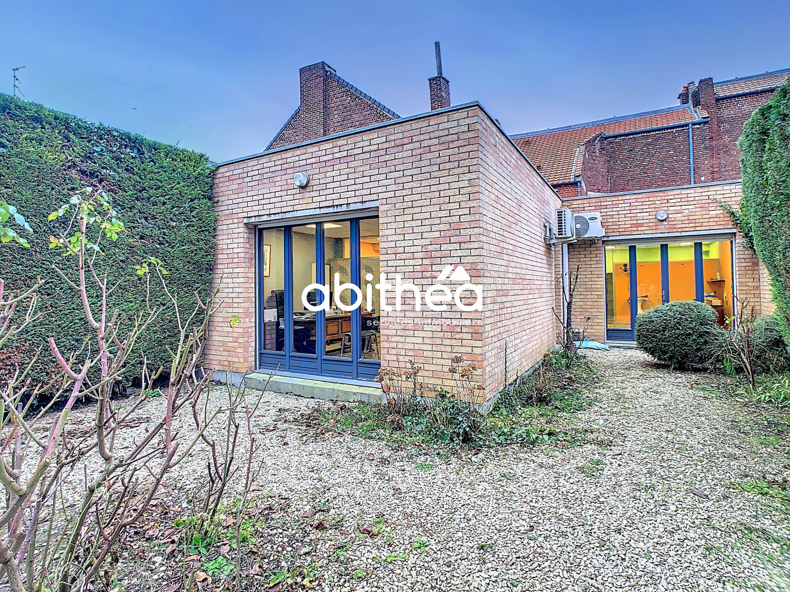Harnes (62440)ENSEMBLE IMMOBILIER 173 m2 : BELLE SURFACE PROFESSIONNELLE 5 BUREAUX + JARDIN + JOLI APPT 49 m2 LOUÉ