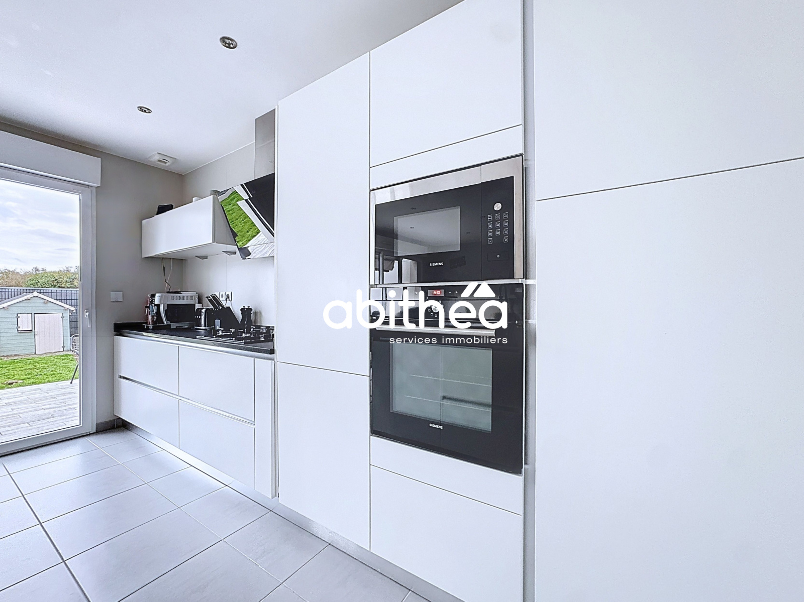 D'une surface appréciable de 108m2, cette maison propose de beaux espaces lumineux et des matériaux de qualité, sur un terrain d'environ 400m2. Dès l'entrée, vous serez accueillis par un spacieux séjour de 50m2, ouvert sur une cuisine équipée ( Cuisine haut de gamme de chez Harrmony). Un espace de vie chaleureux baigné de lumière avec son poêle à pellet.